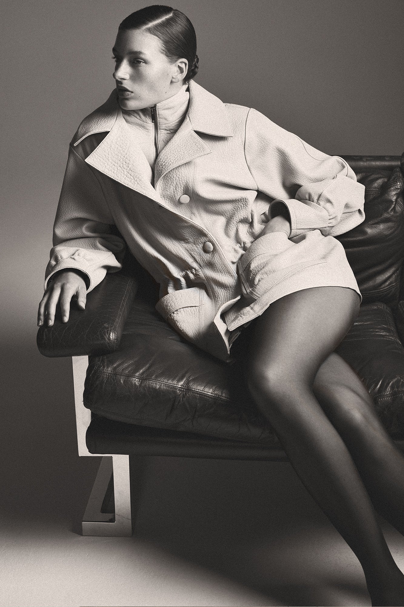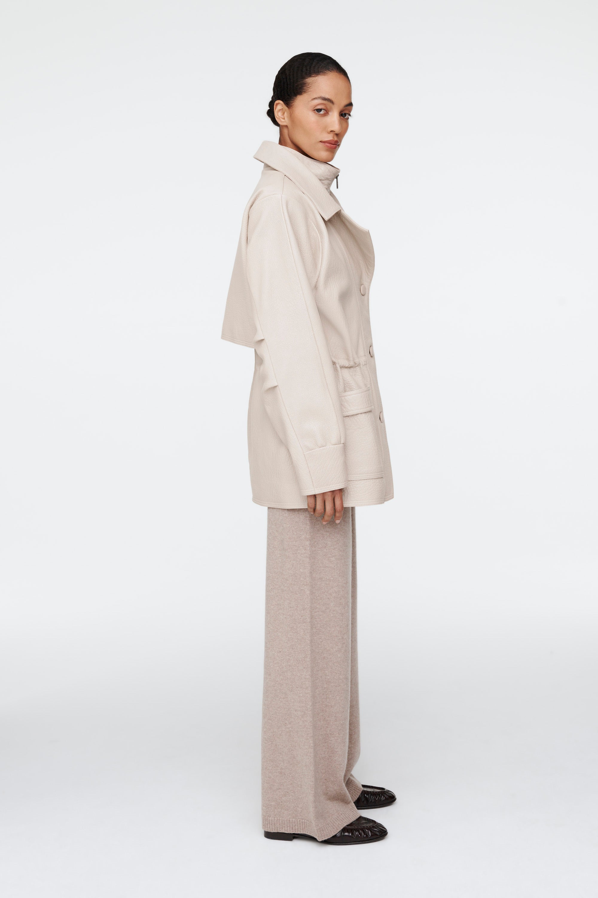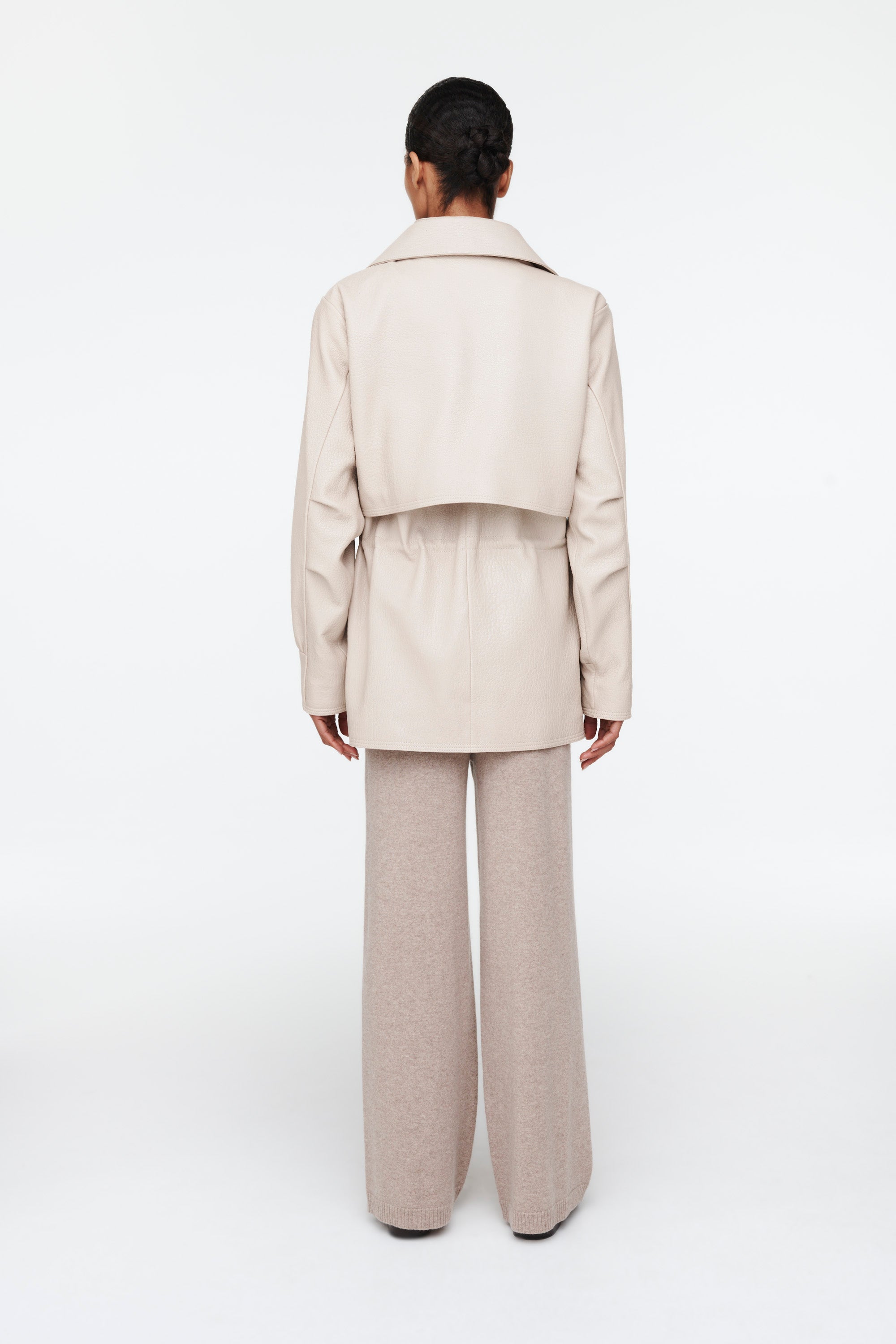 A beautiful double collar leather jacket, use the draw cord to cinch the waist for an effortlessly relaxed look.