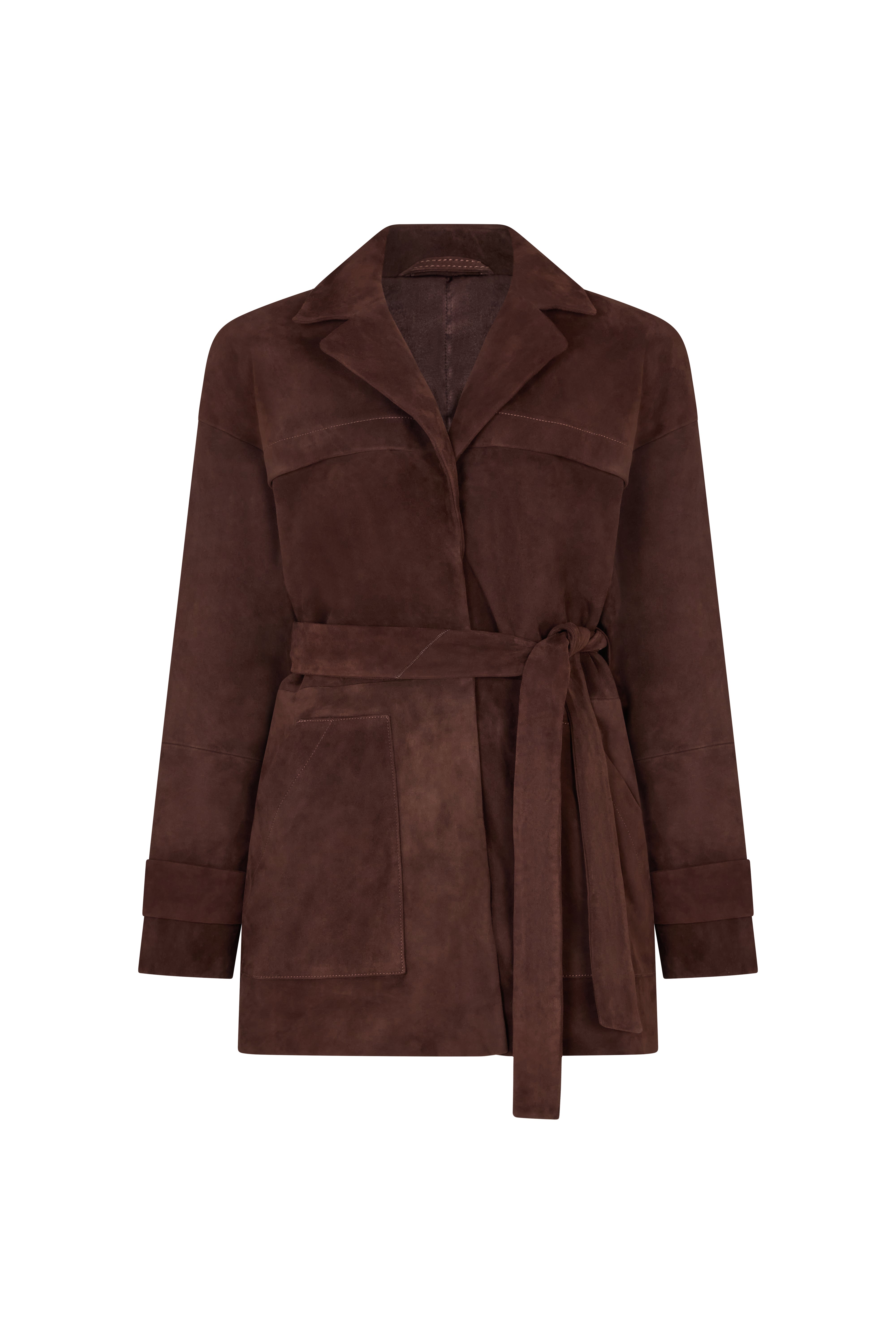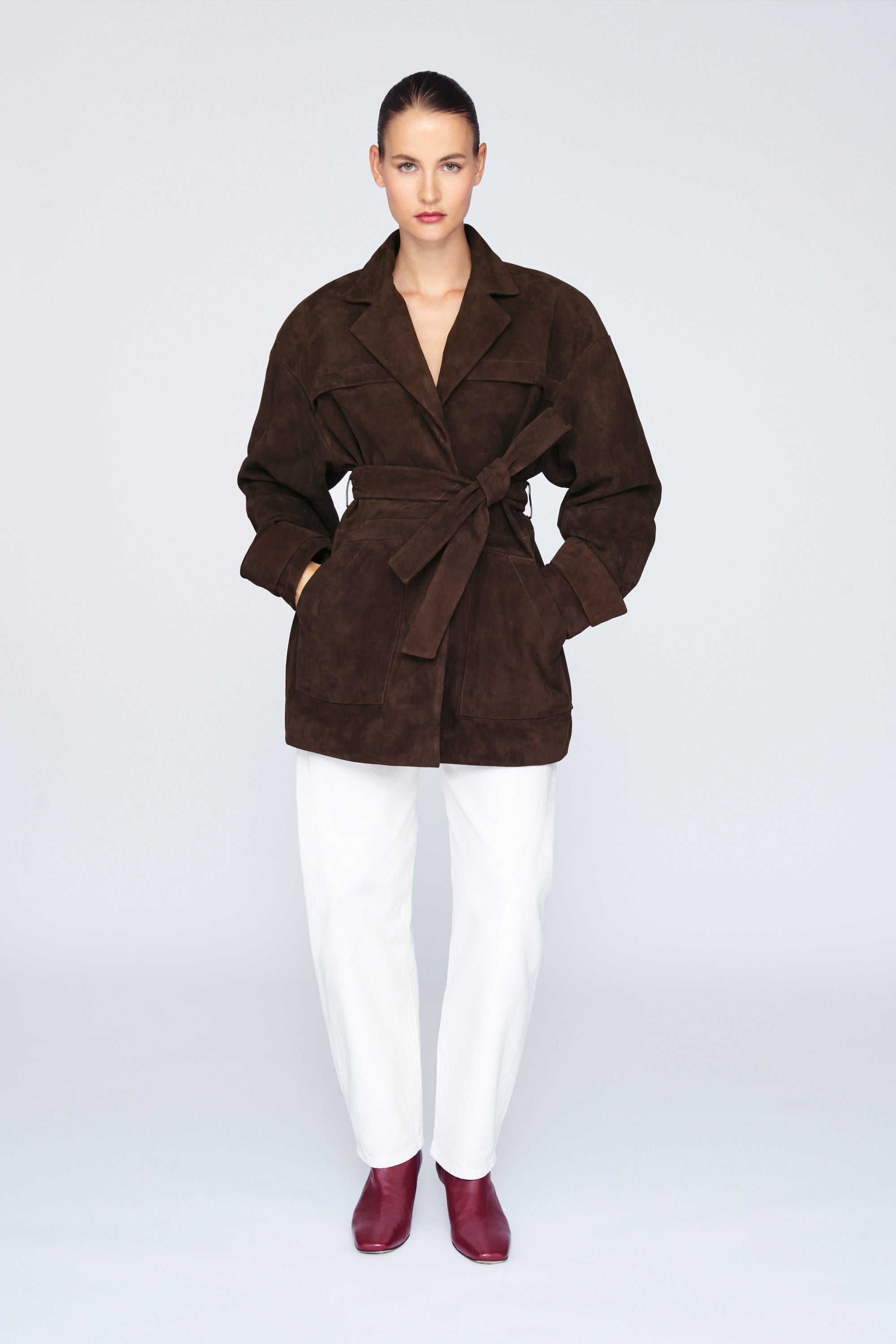 Cut from buttery soft suede, this jacket is inspired by the always-flattering shape of a classic oversized shirt. Chic yet casual, you can wear it loose or cinch in the waist with the belt for a more feminine silhouette.