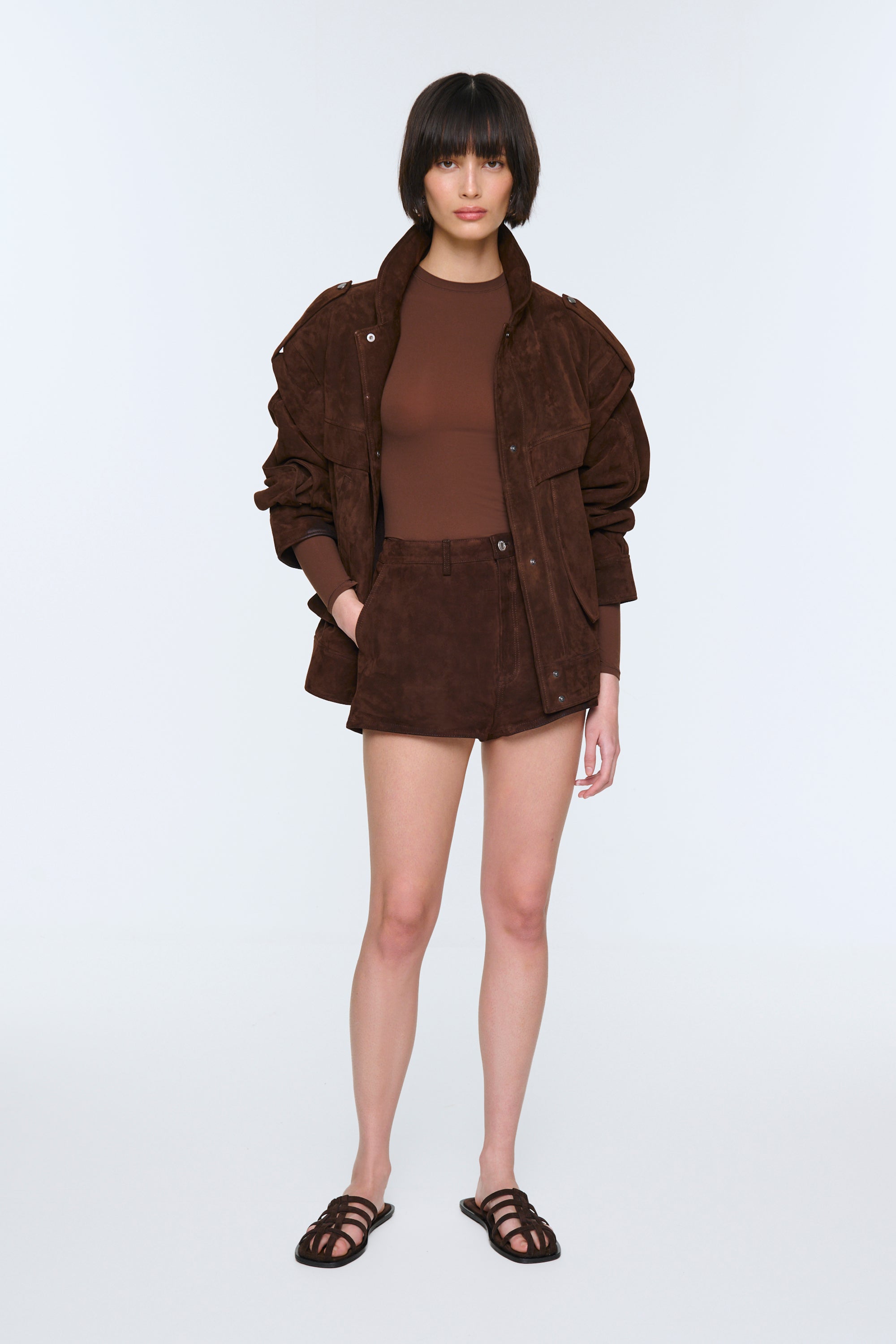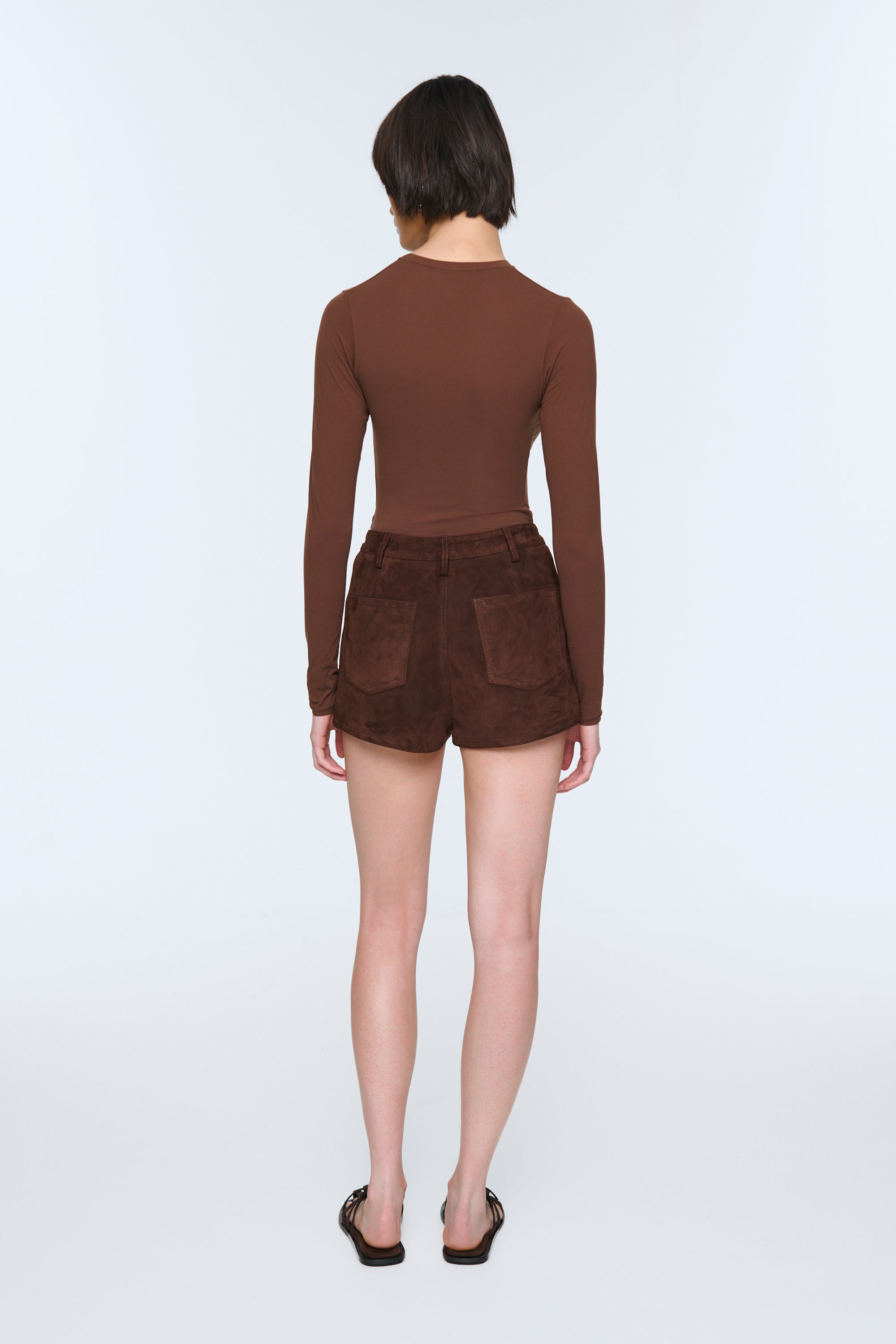 We're smitten with these suede shorts. Designed to flatter, they effortlessly transition from casual to dressed-up with a simple shoe change, or pair beautifully with tights for added versatility.