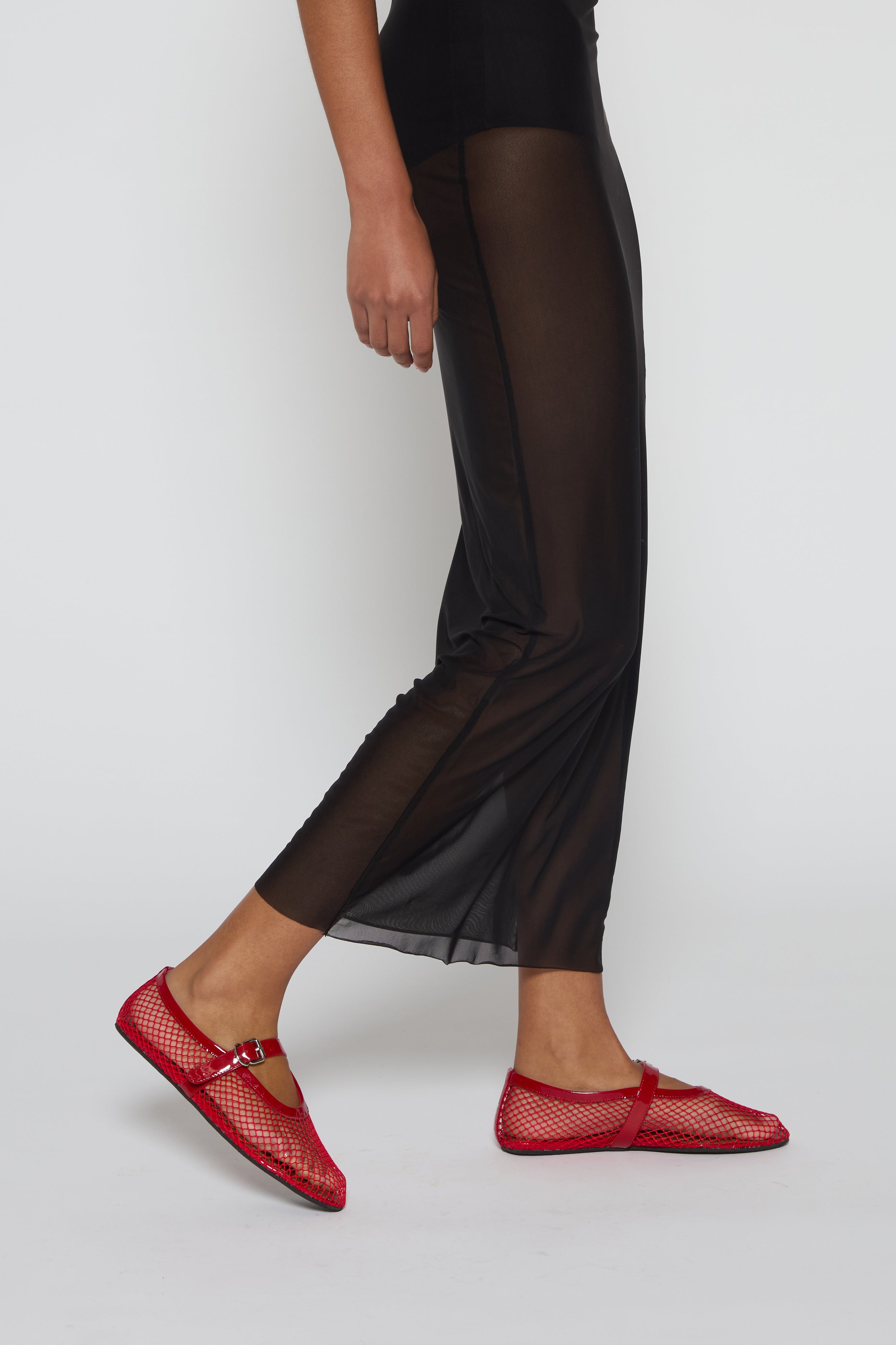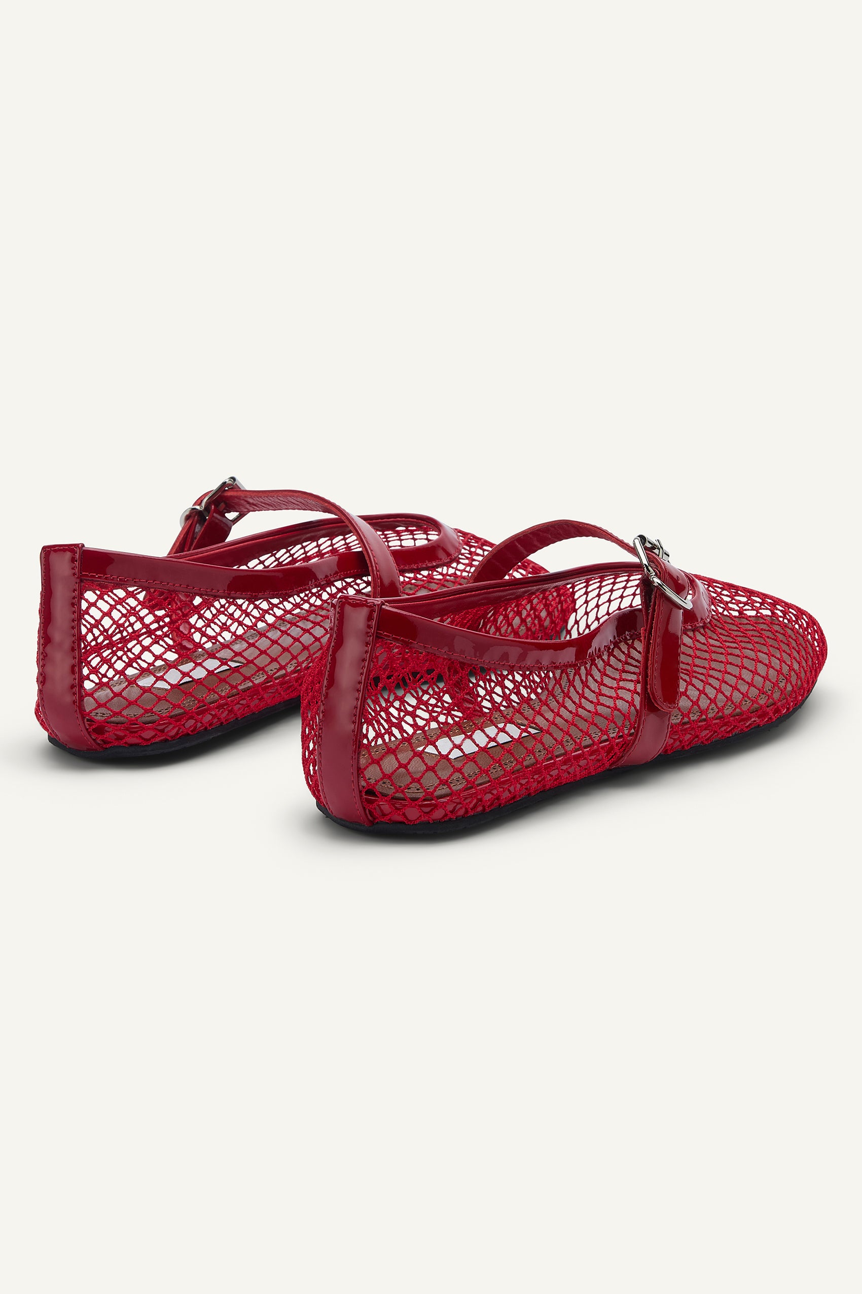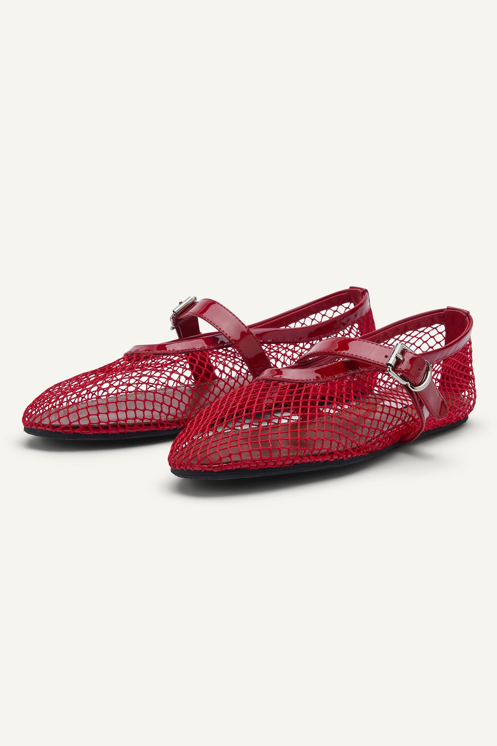 Make a statement with these opulent fishnet and leather ballet flats. The blend of patent leather and fishnet creates the perfect choice for anyone who loves a classic style with a twist.