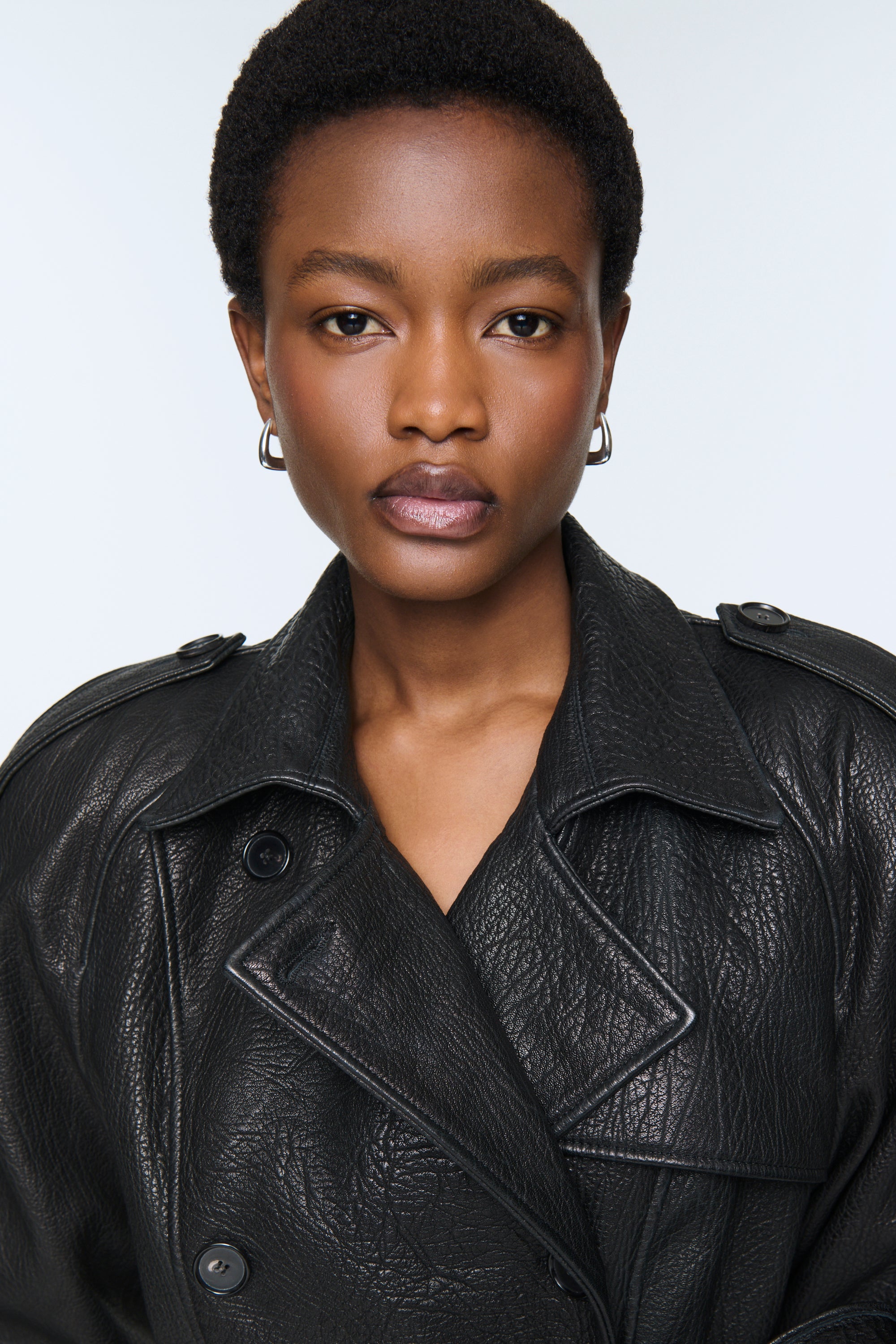 This coat will make a statement. Crafted from incredibly soft, high quality grained leather, it's impeccably tailored into a classic double-breasted trench, featuring shoulder pads, epaulettes, and a leather sash. This cocooning coat is destined to become a staple in your wardrobe.