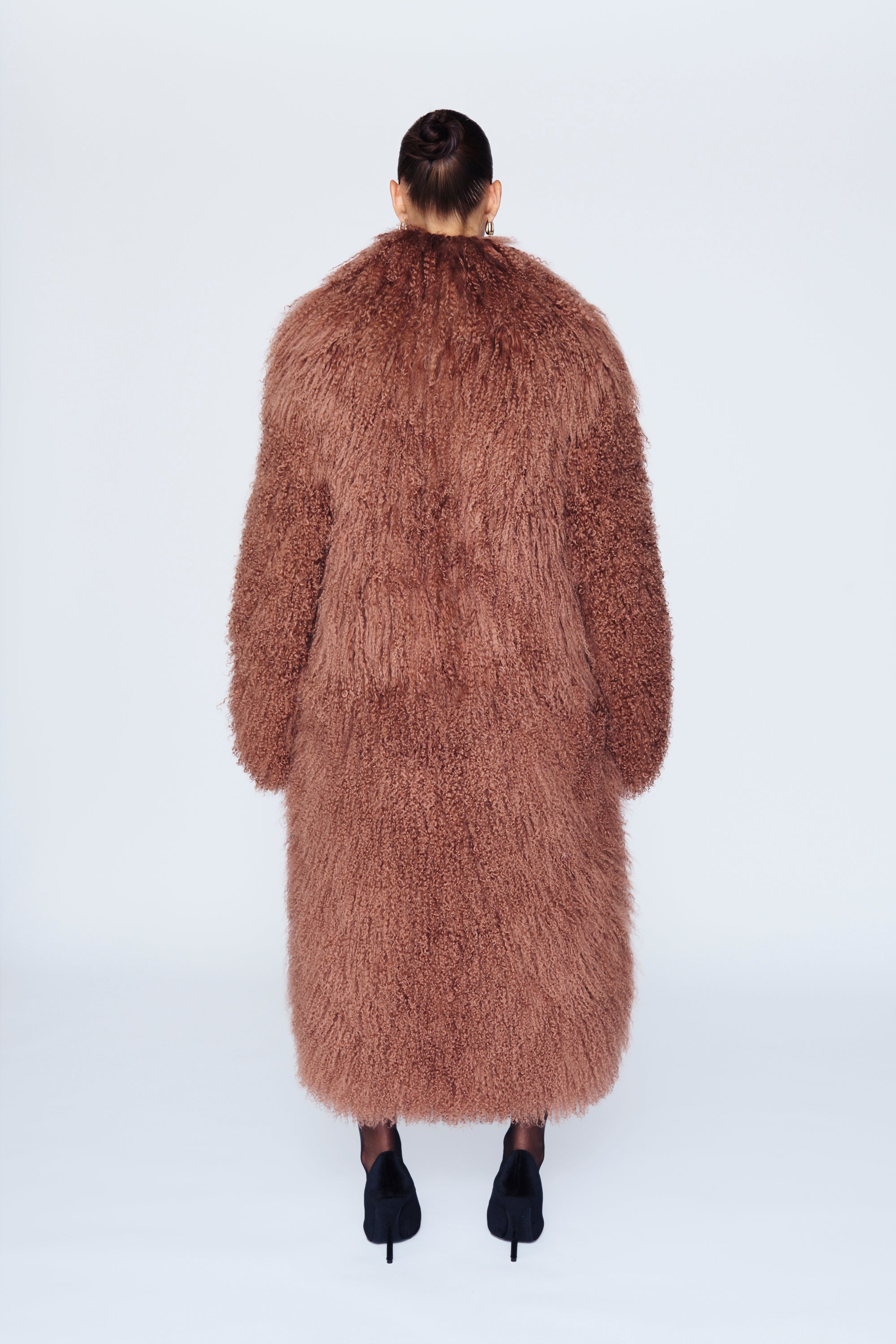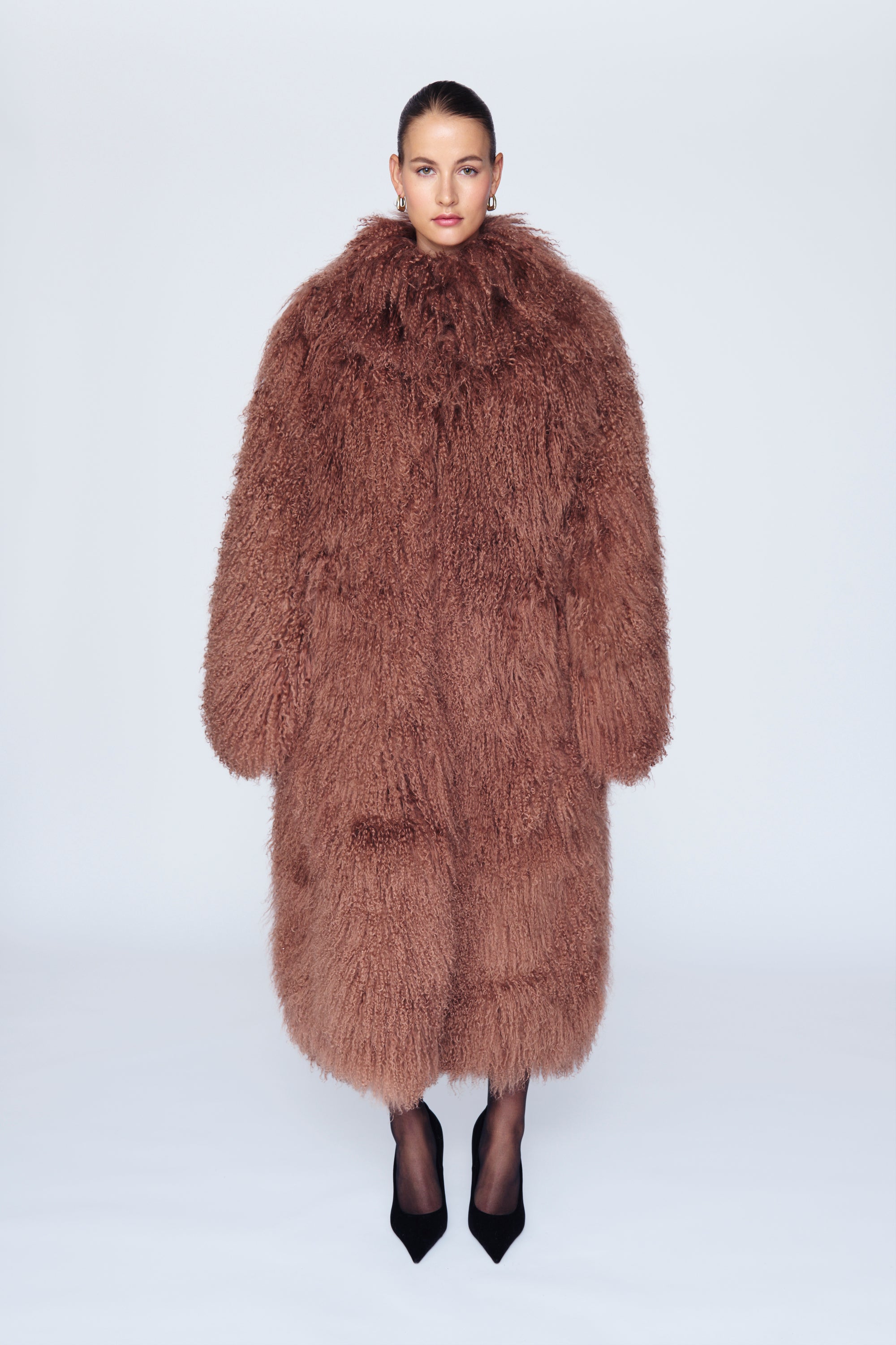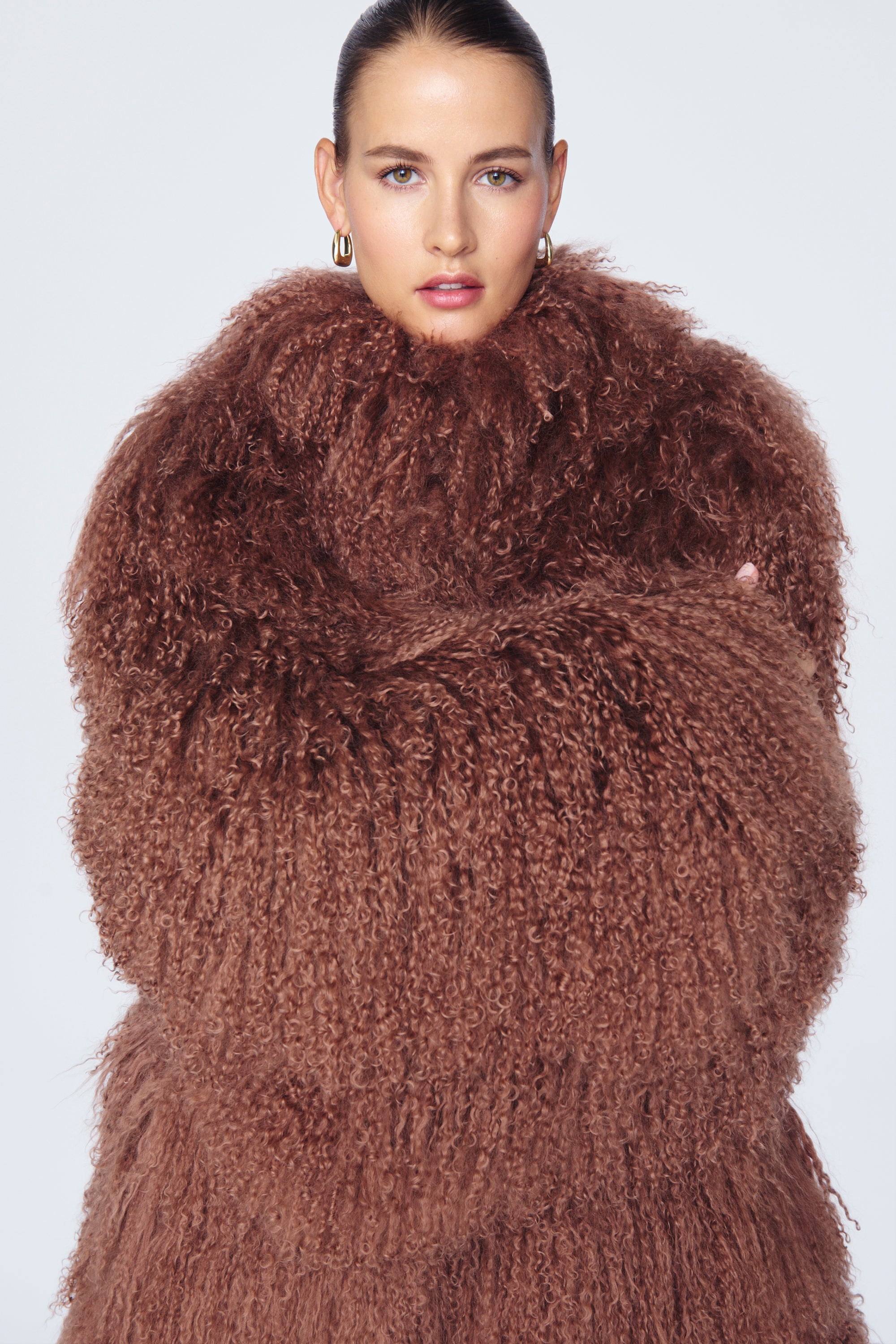 Cut from the most sumptuous, Mongolian sheepskin, this coat makes a statement wherever it goes. The natural curly finish and the discreetly concealed fastenings make this piece feel as chic as it is cosy.