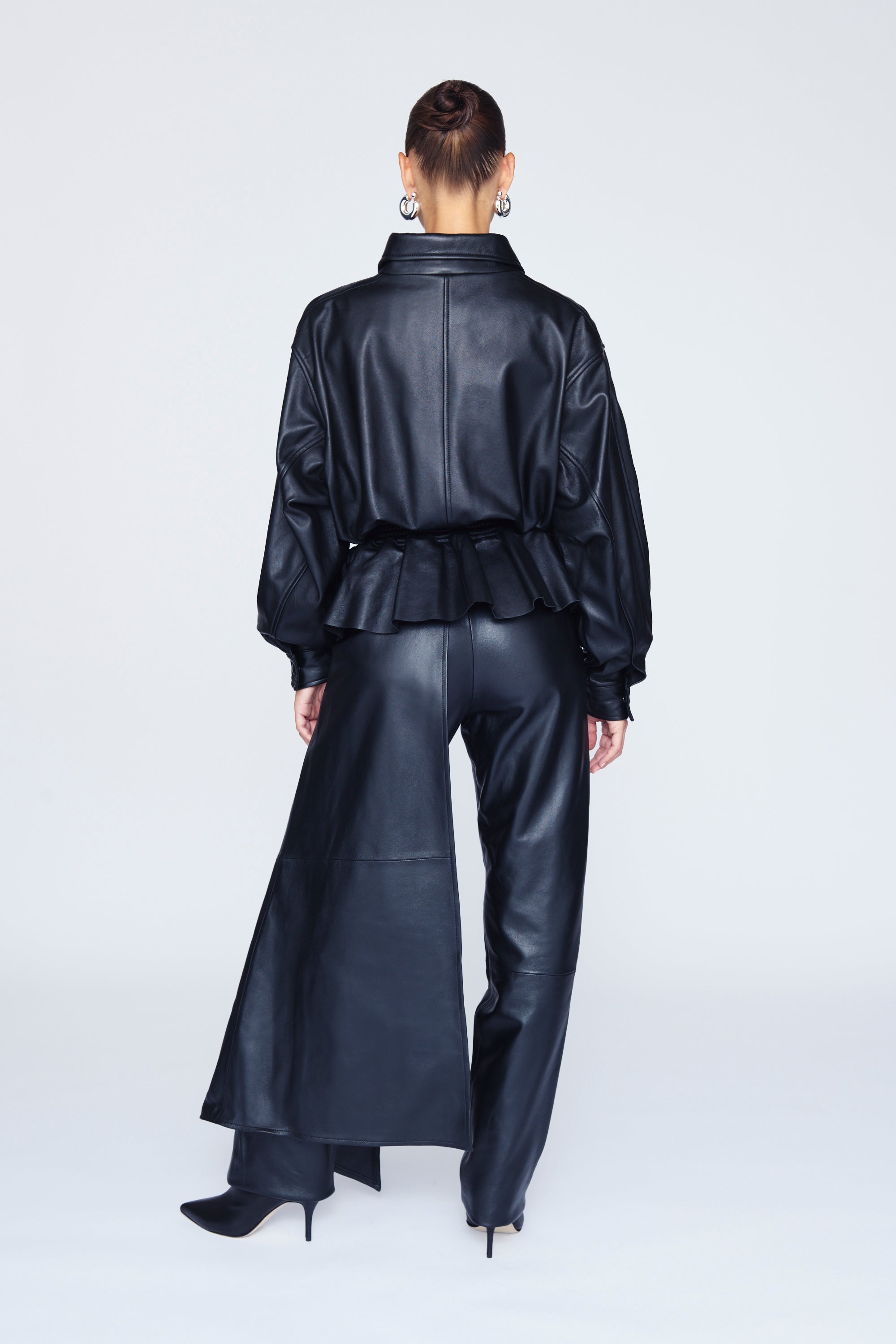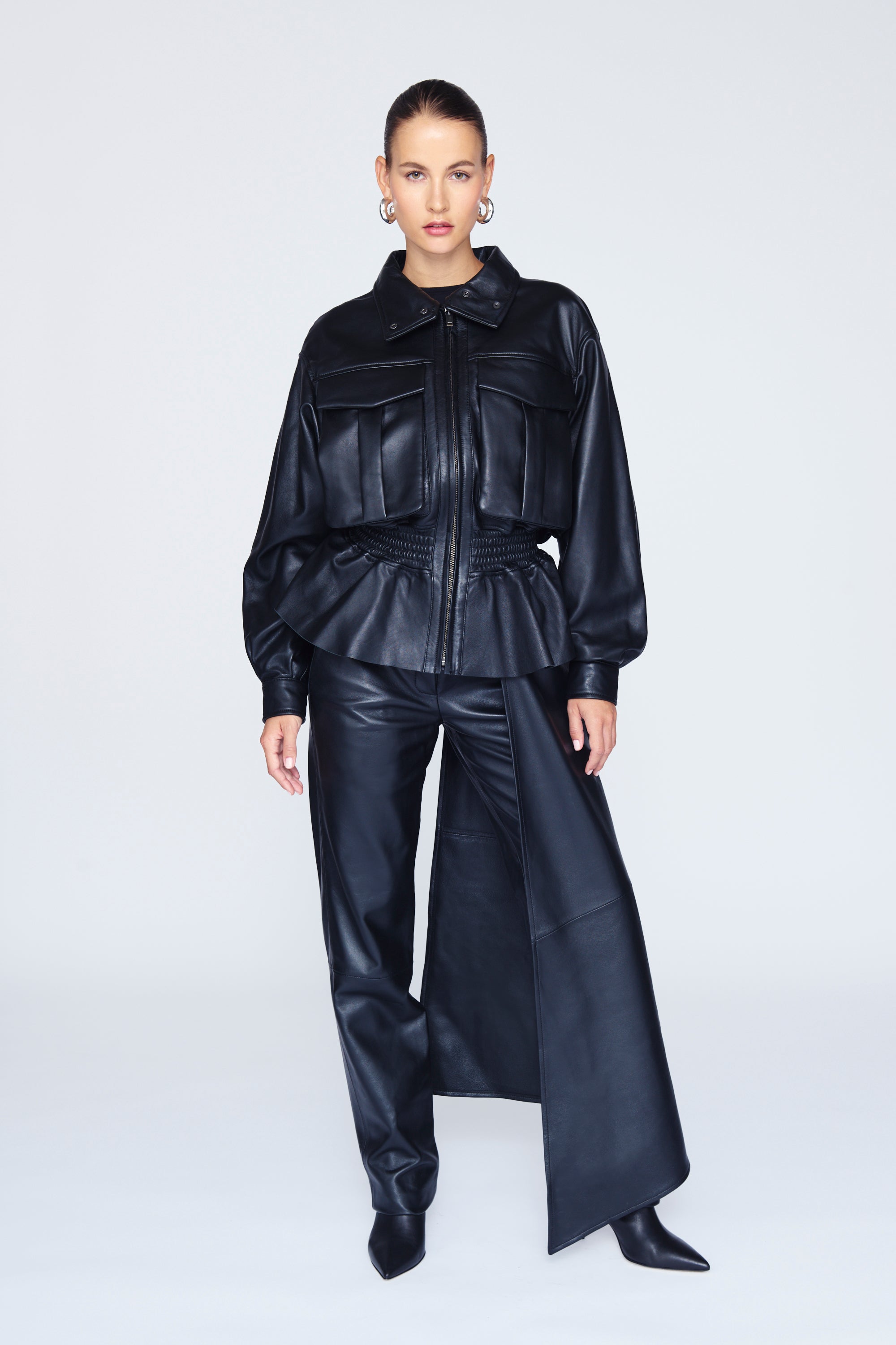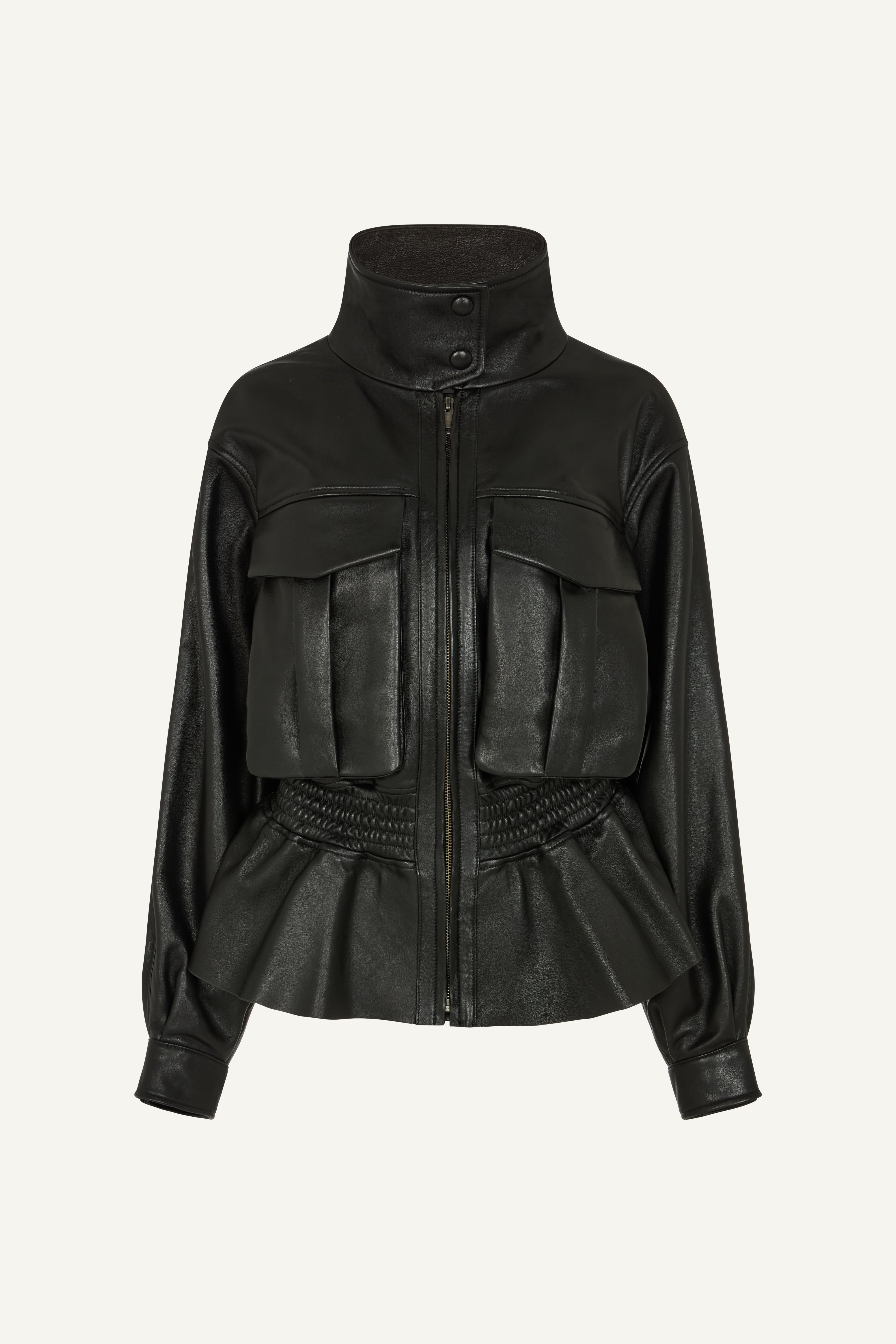 A blouson jacket with a twist. The Hazel adds a light and flirtatious feel to this classic cut with its gathered waist and subtle peplum. The incredibly supple, glossy leather, lined with soft satin and finished with expertly tailored pockets makes it the perfect example of utility meets pretty.