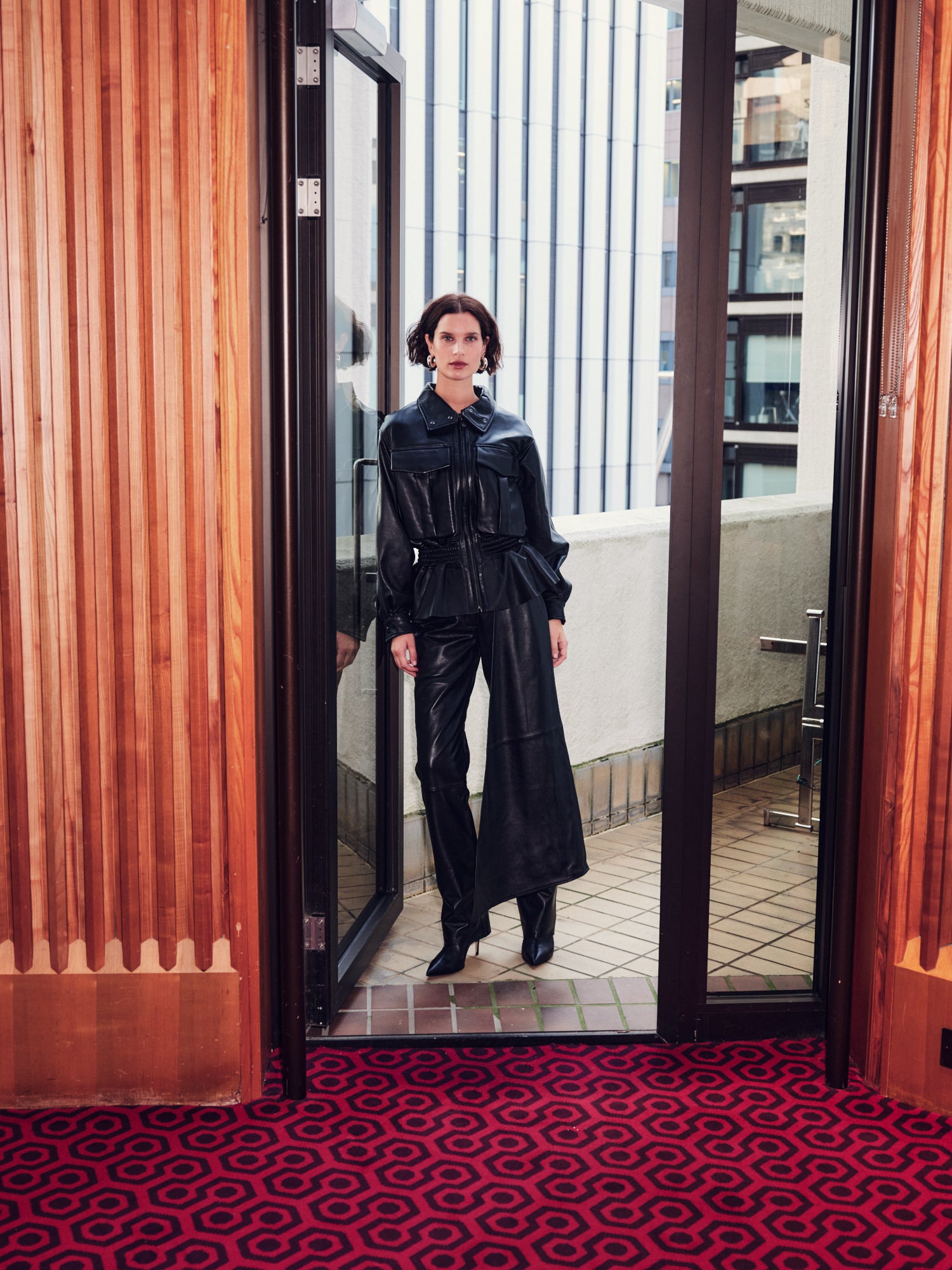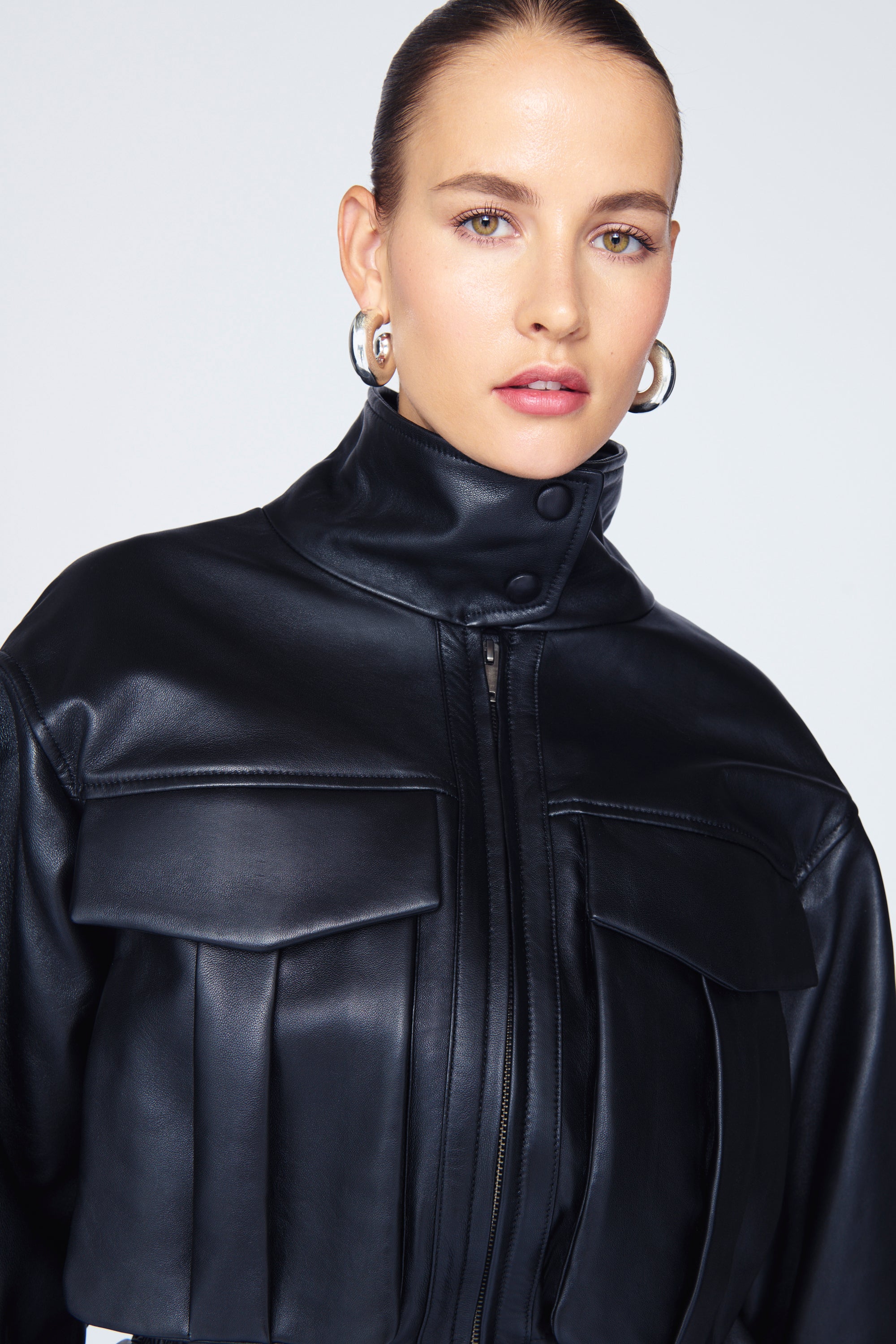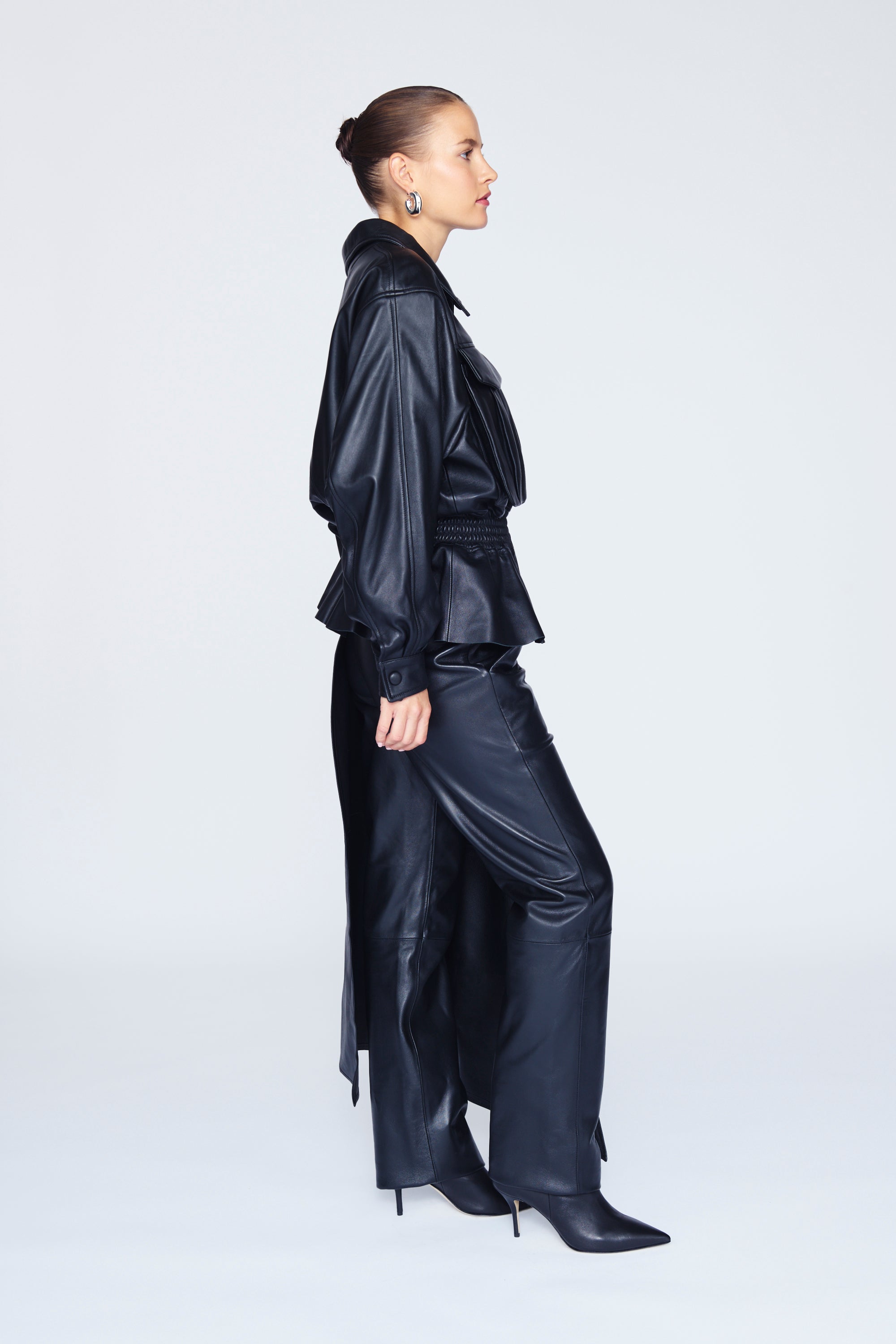 A blouson jacket with a twist. The Hazel adds a light and flirtatious feel to this classic cut with its gathered waist and subtle peplum. The incredibly supple, glossy leather, lined with soft satin and finished with expertly tailored pockets makes it the perfect example of utility meets pretty.