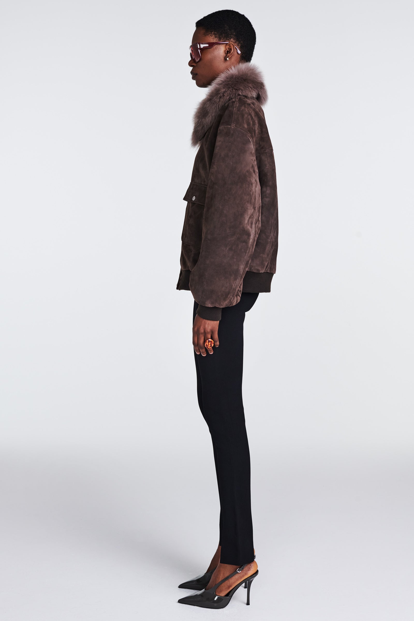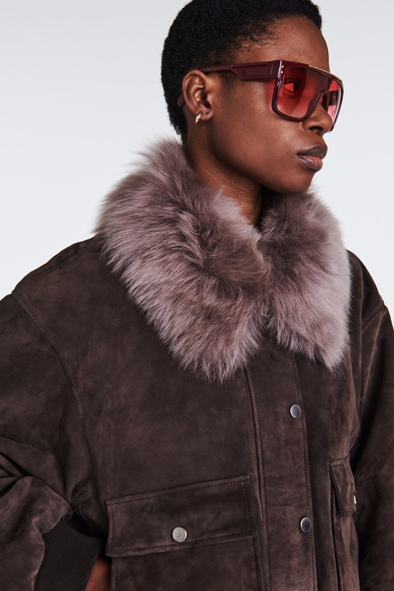Stay effortlessly chic in this short jacket featuring a soft, removable Toscana collar for versatile styling. Perfect for casual days, it blends comfort and modern elegance with ease.