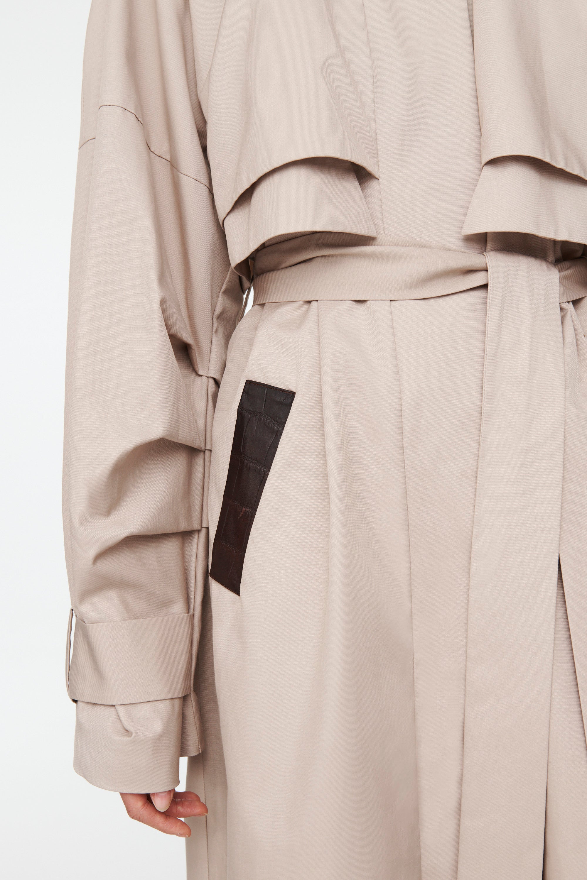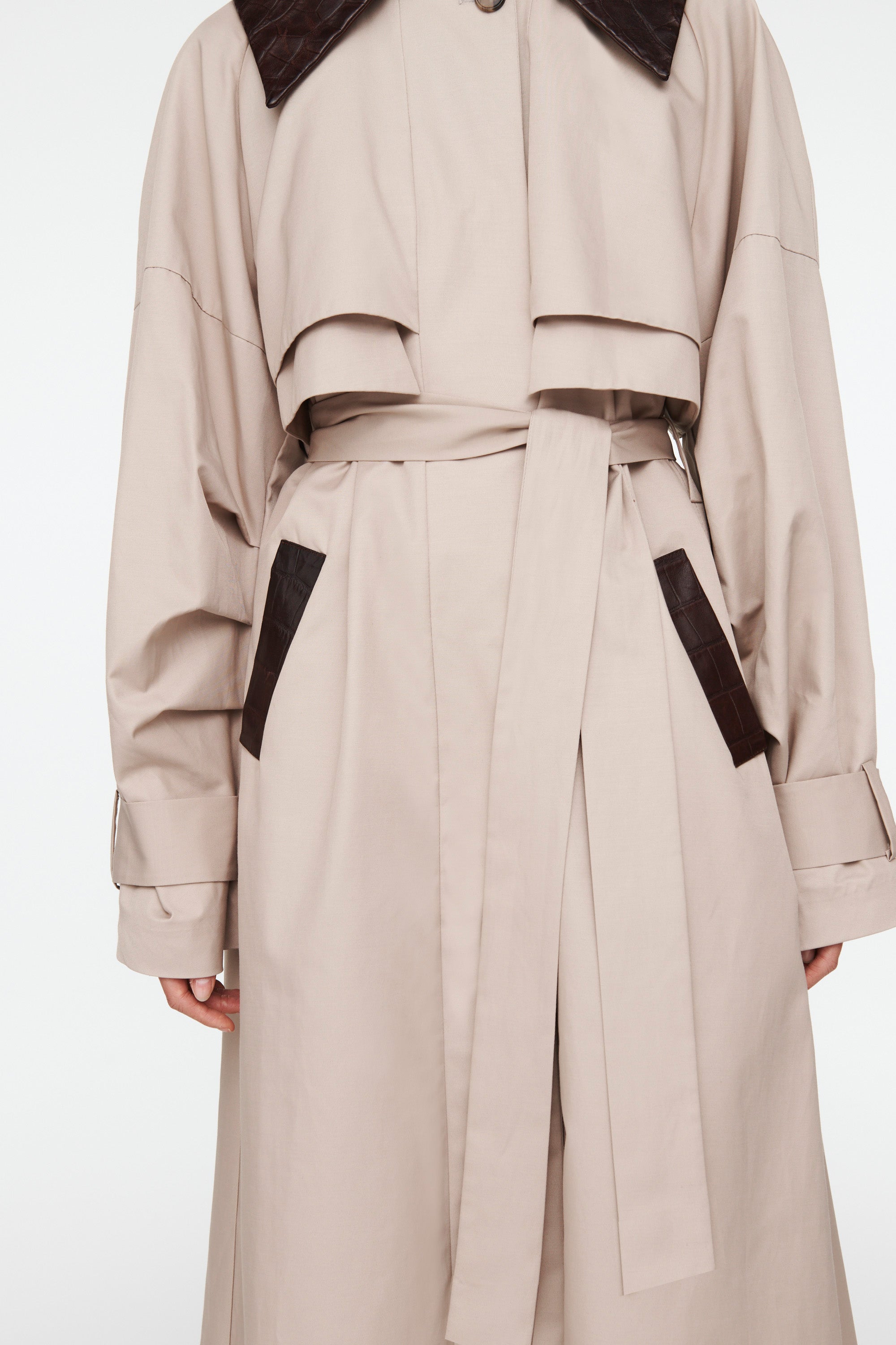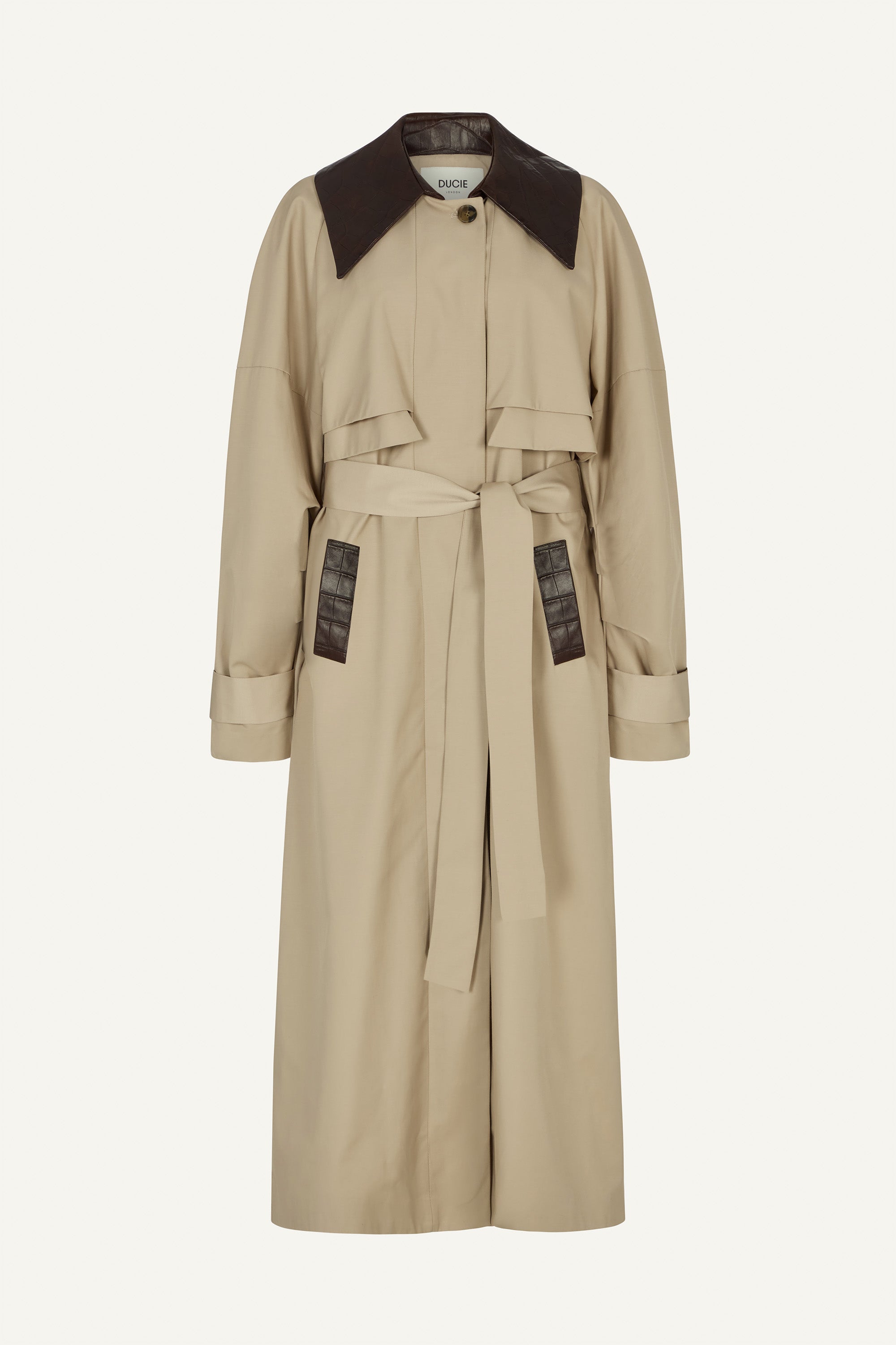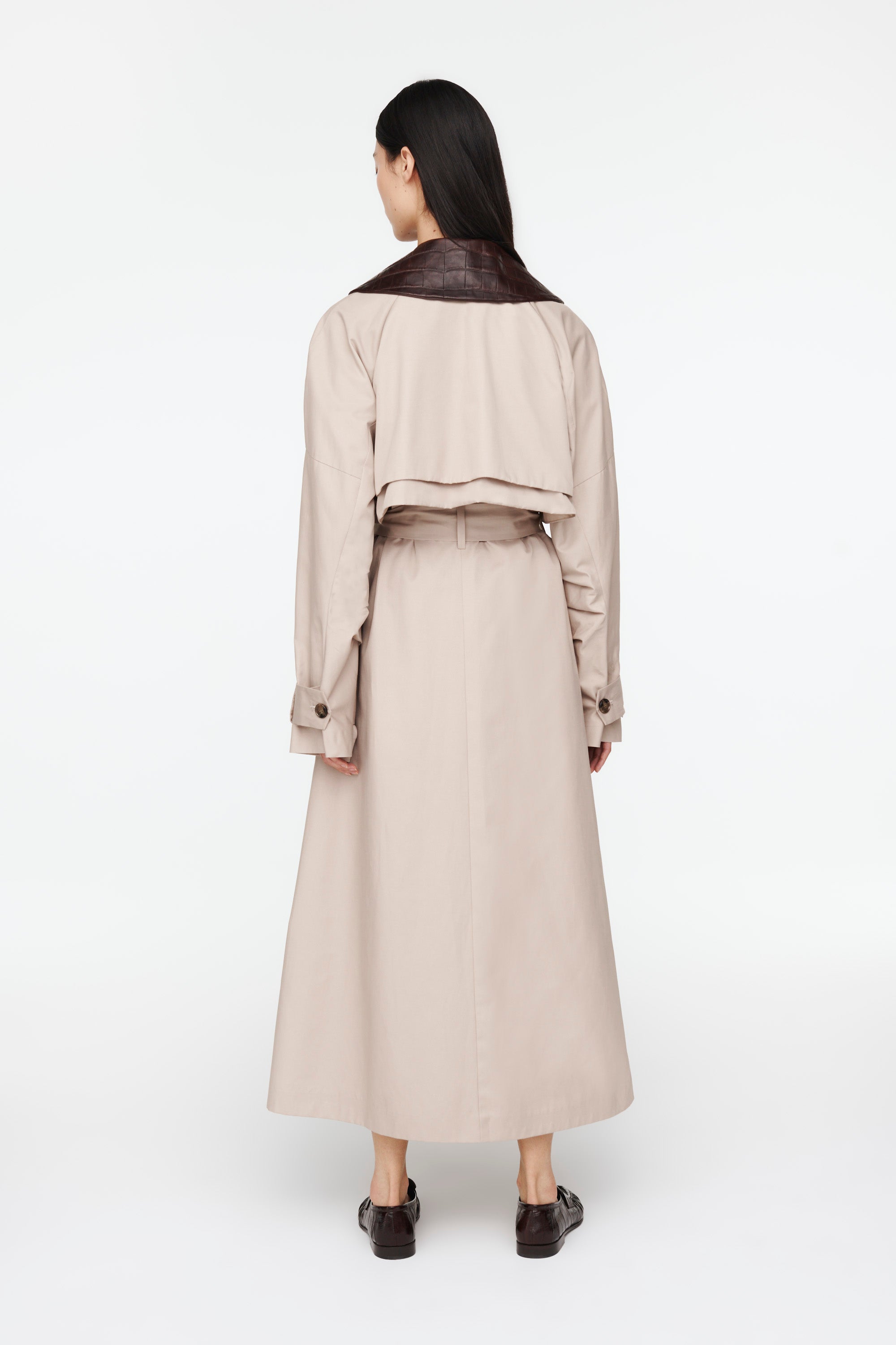 Our Juliet canvas trench coat trimmed with leather, puts a contemporary spin on a classic. Designed for a relaxed fit with a cinching waist belt this is the perfect transeasonal investment piece.