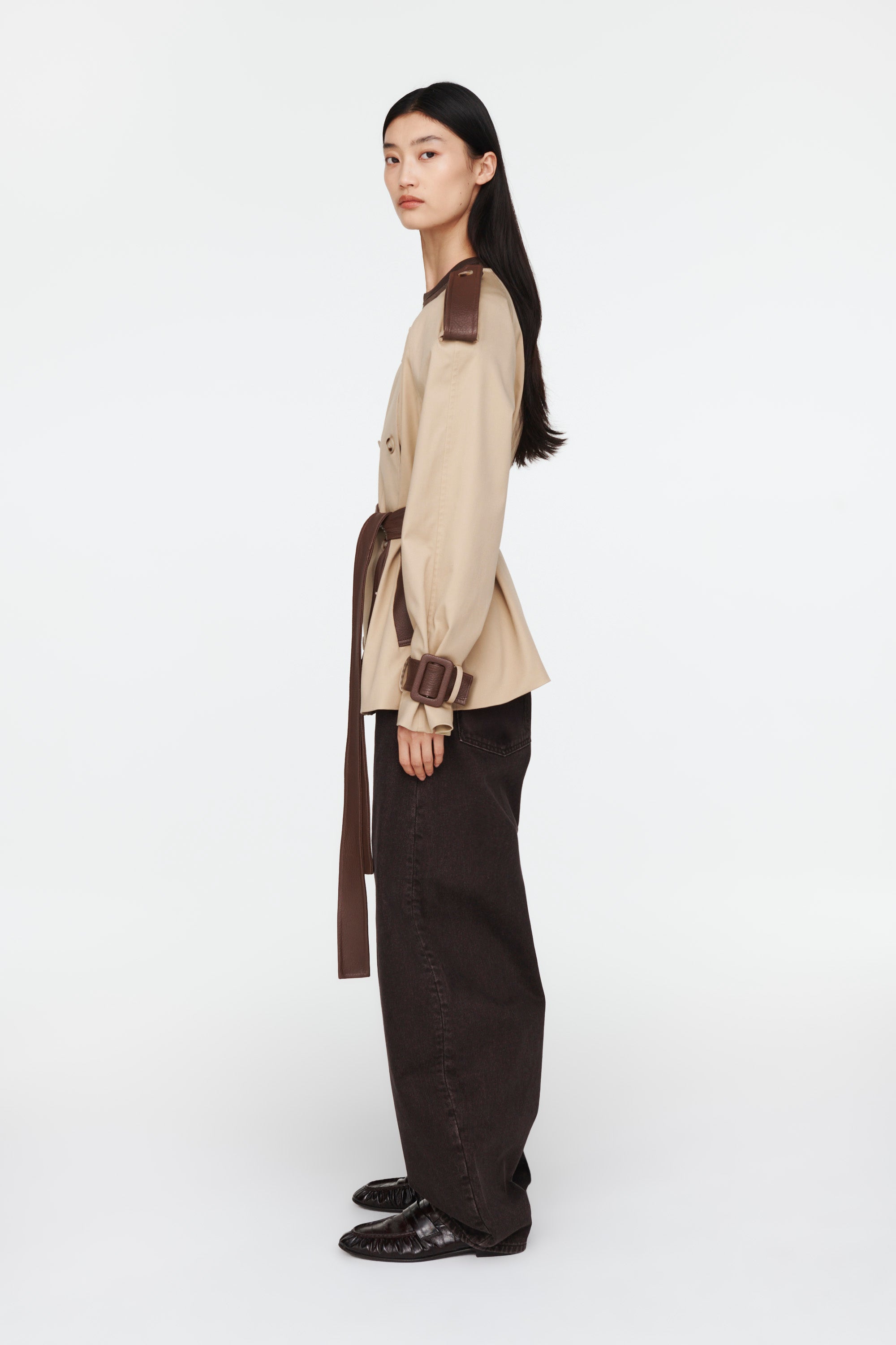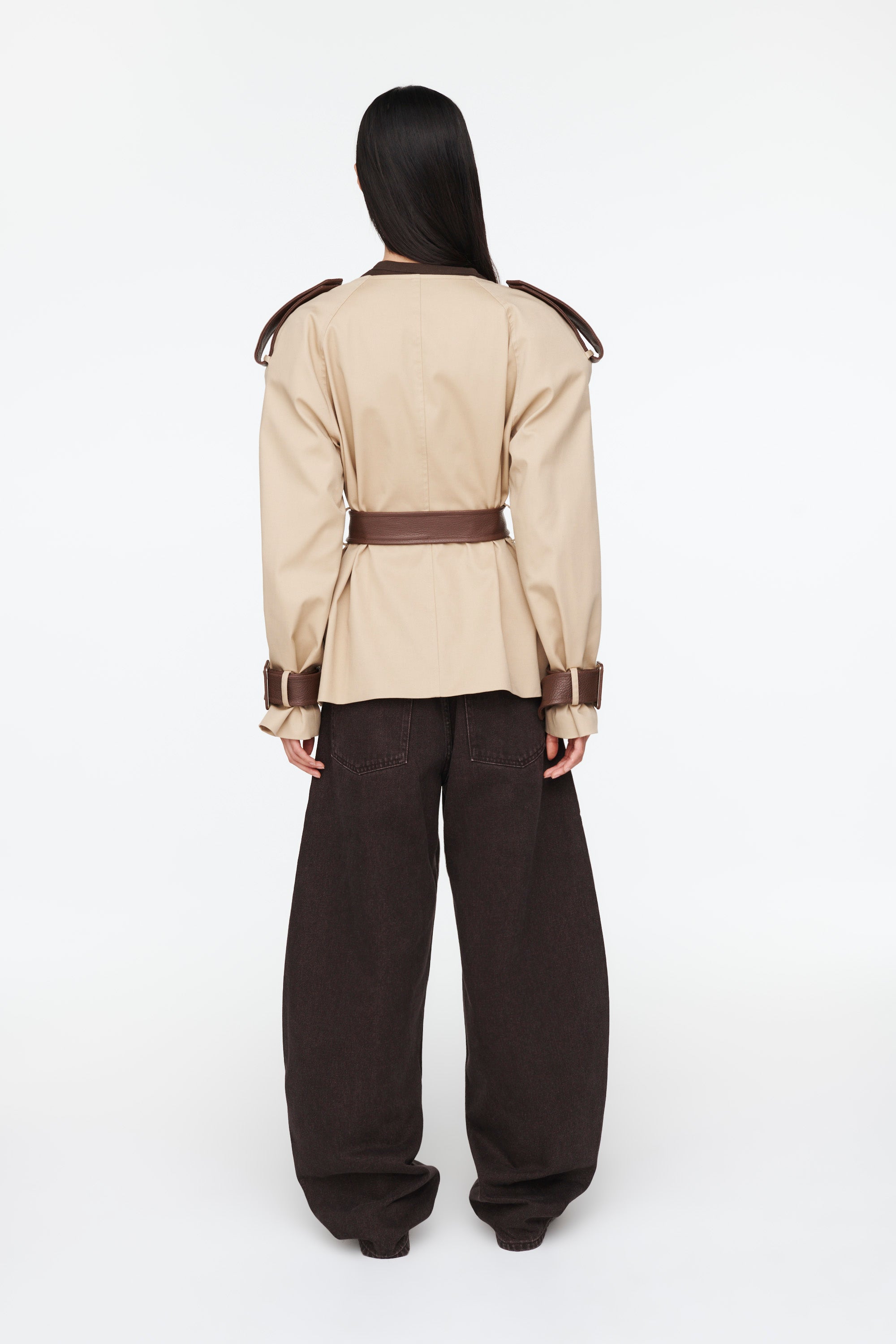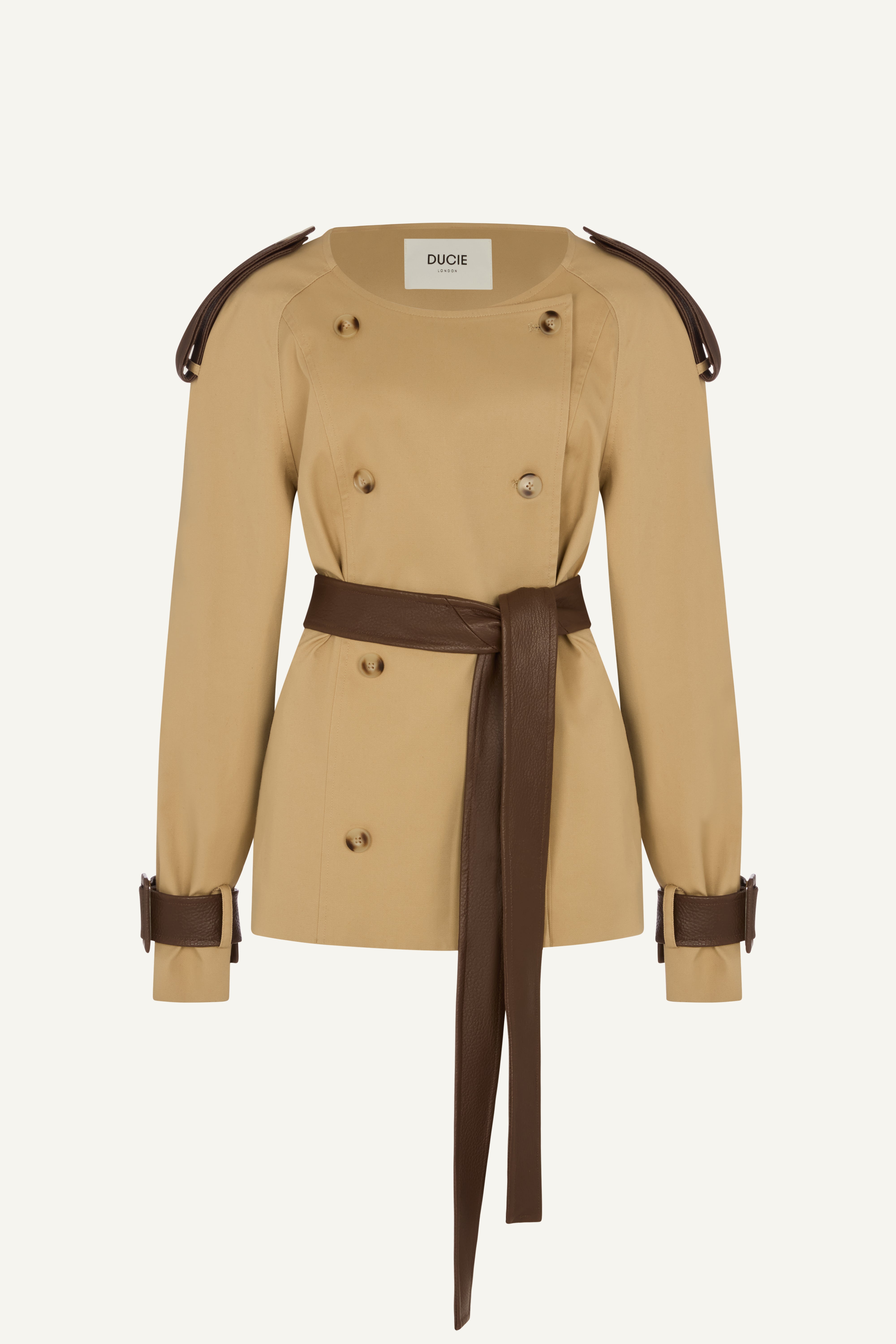 A sleek double breasted short jacket, the Klarissa is designed with elements borrowed from chic tailoring and cool utilitarian styles.