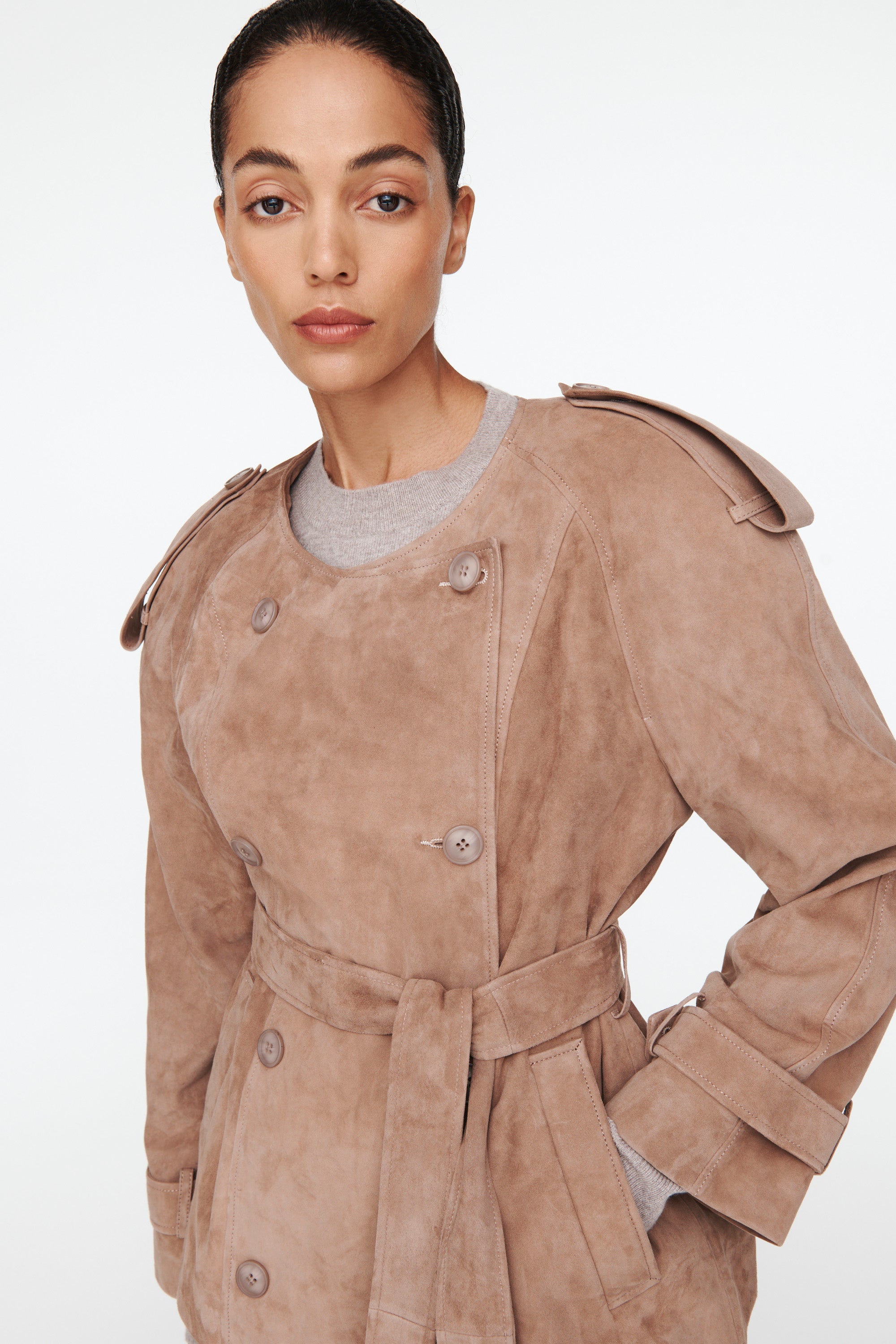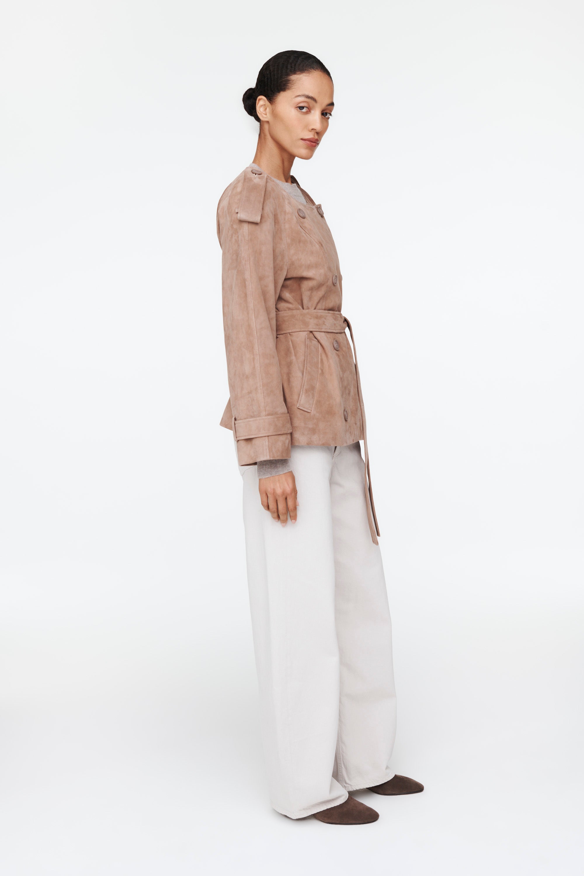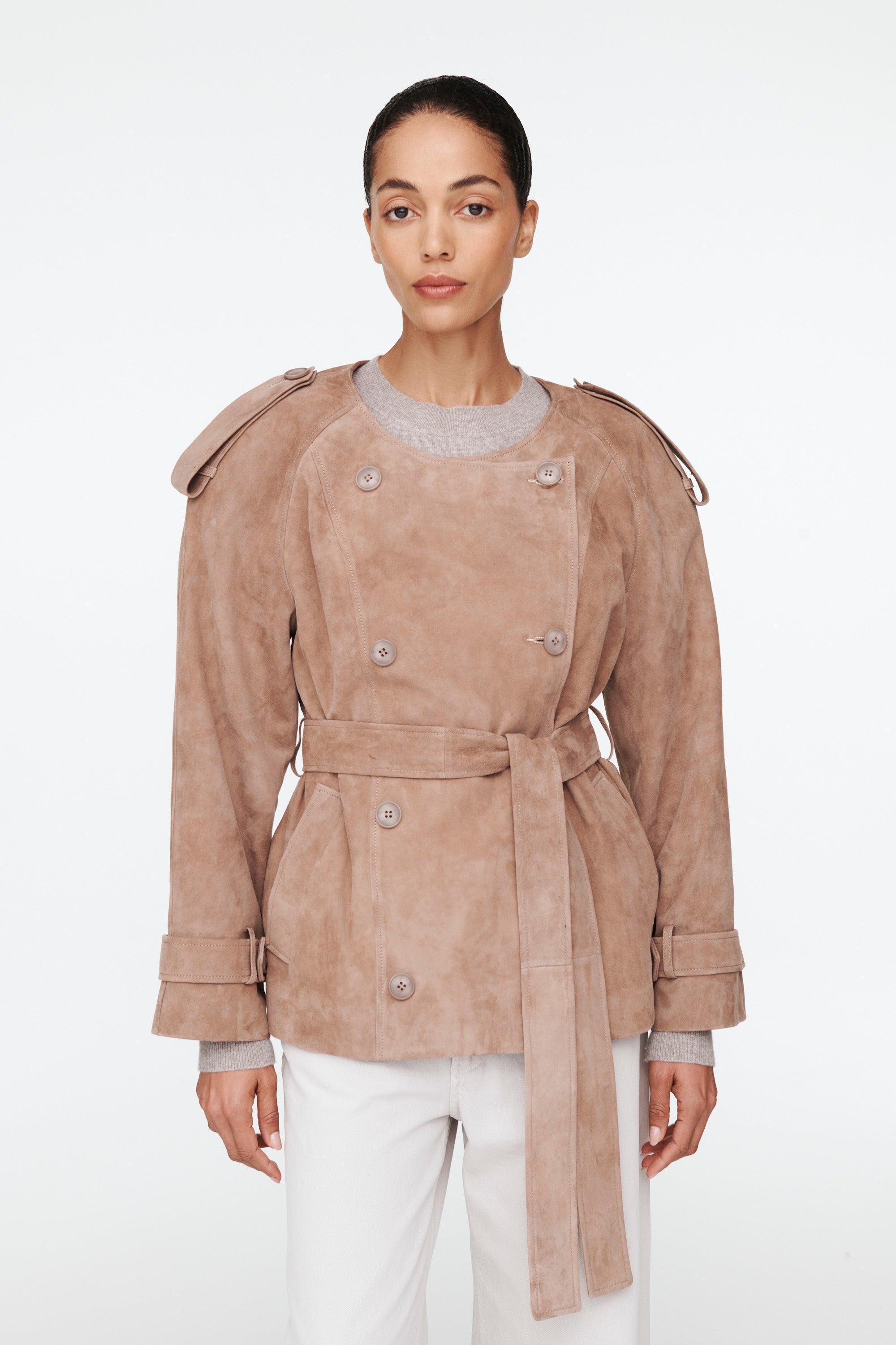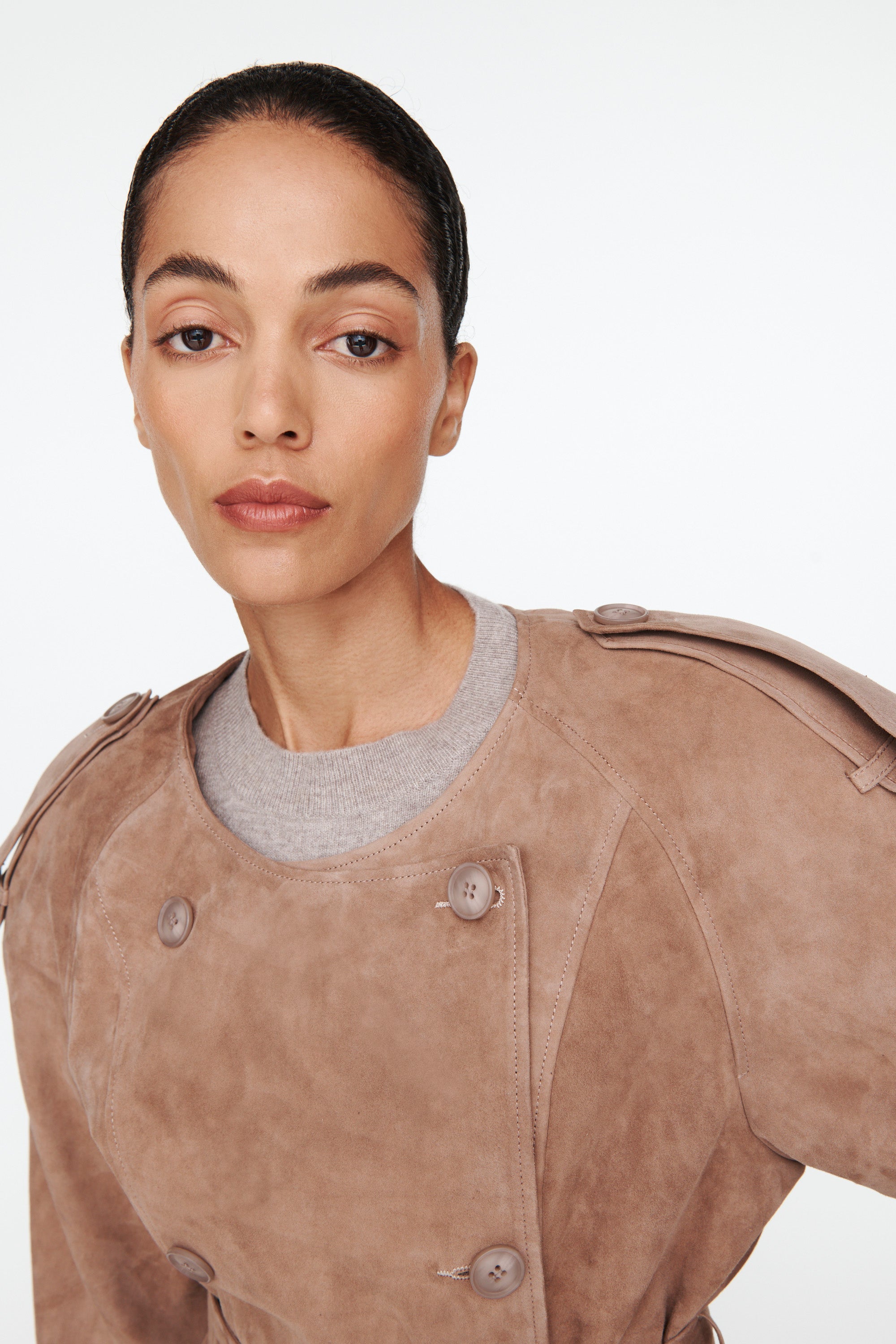 A sleek double breasted short jacket, the Klarissa is designed with elements borrowed from chic tailoring and cool utilitarian styles.
