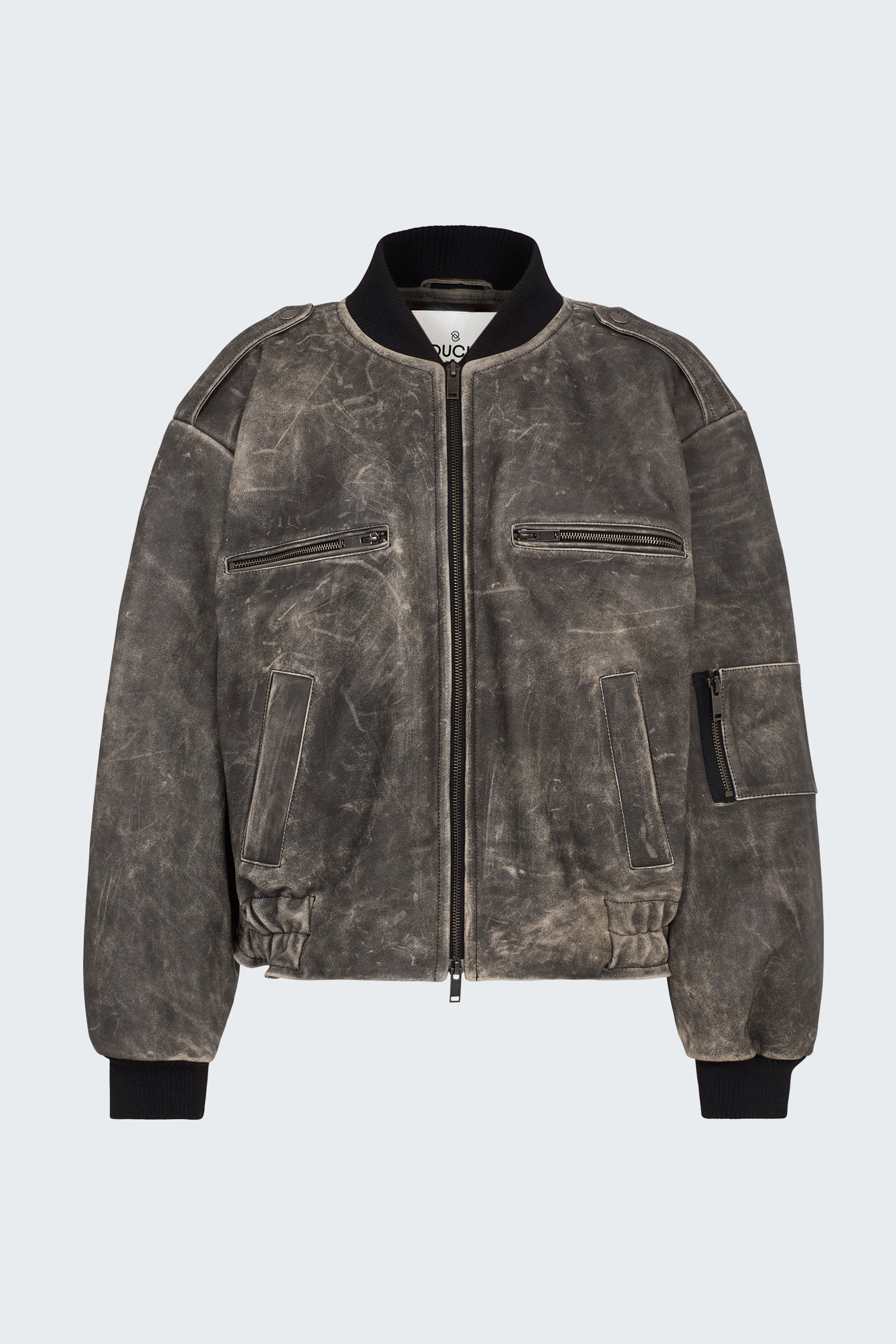 A soft textured leather bomber that will become your favourite sidekick through winter and beyond. We love the vintage feel, faded finish, the classic ribbed cuffs and collar and the slightly shorter length that ends in a flattering ruched waistline.