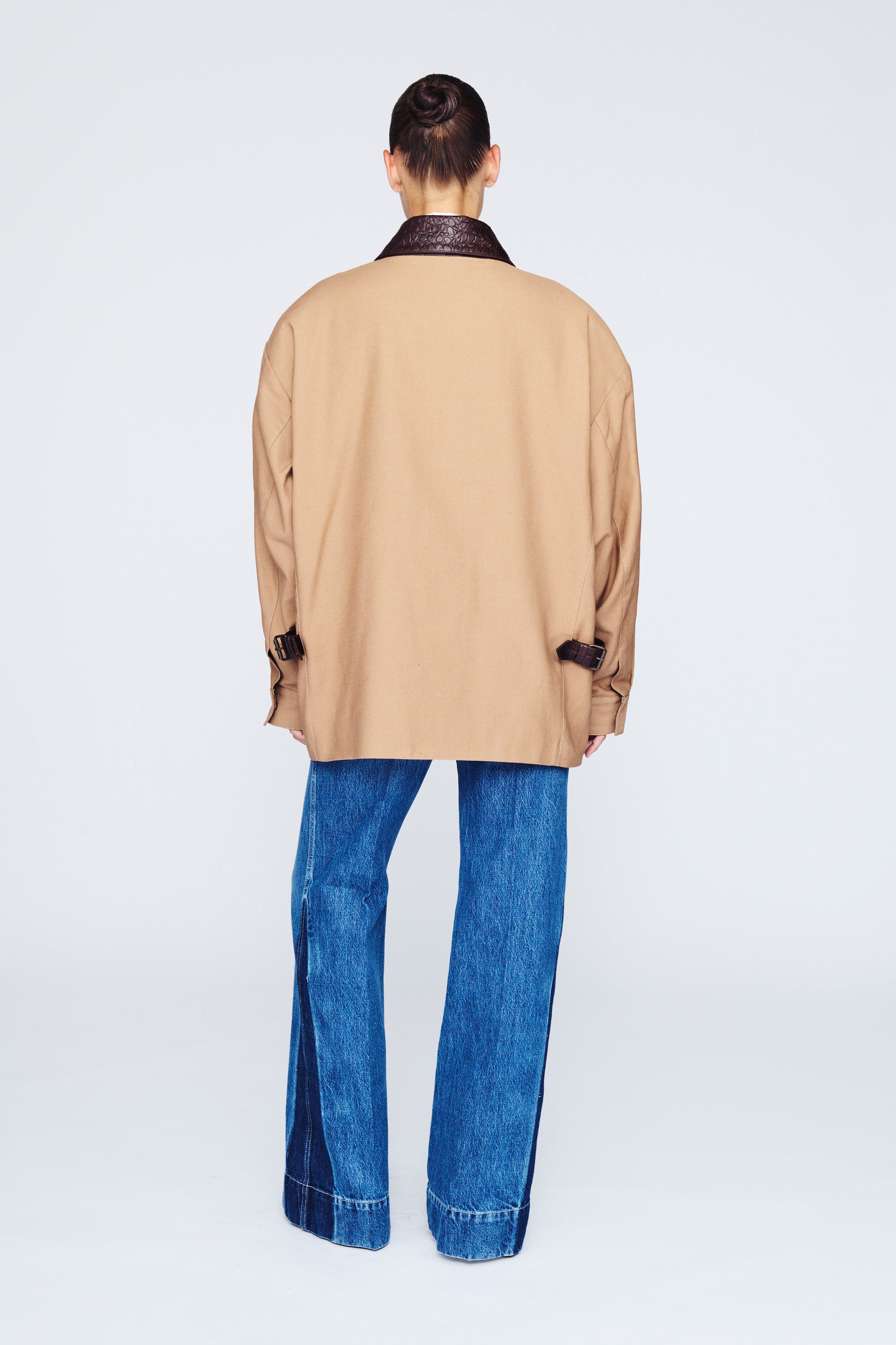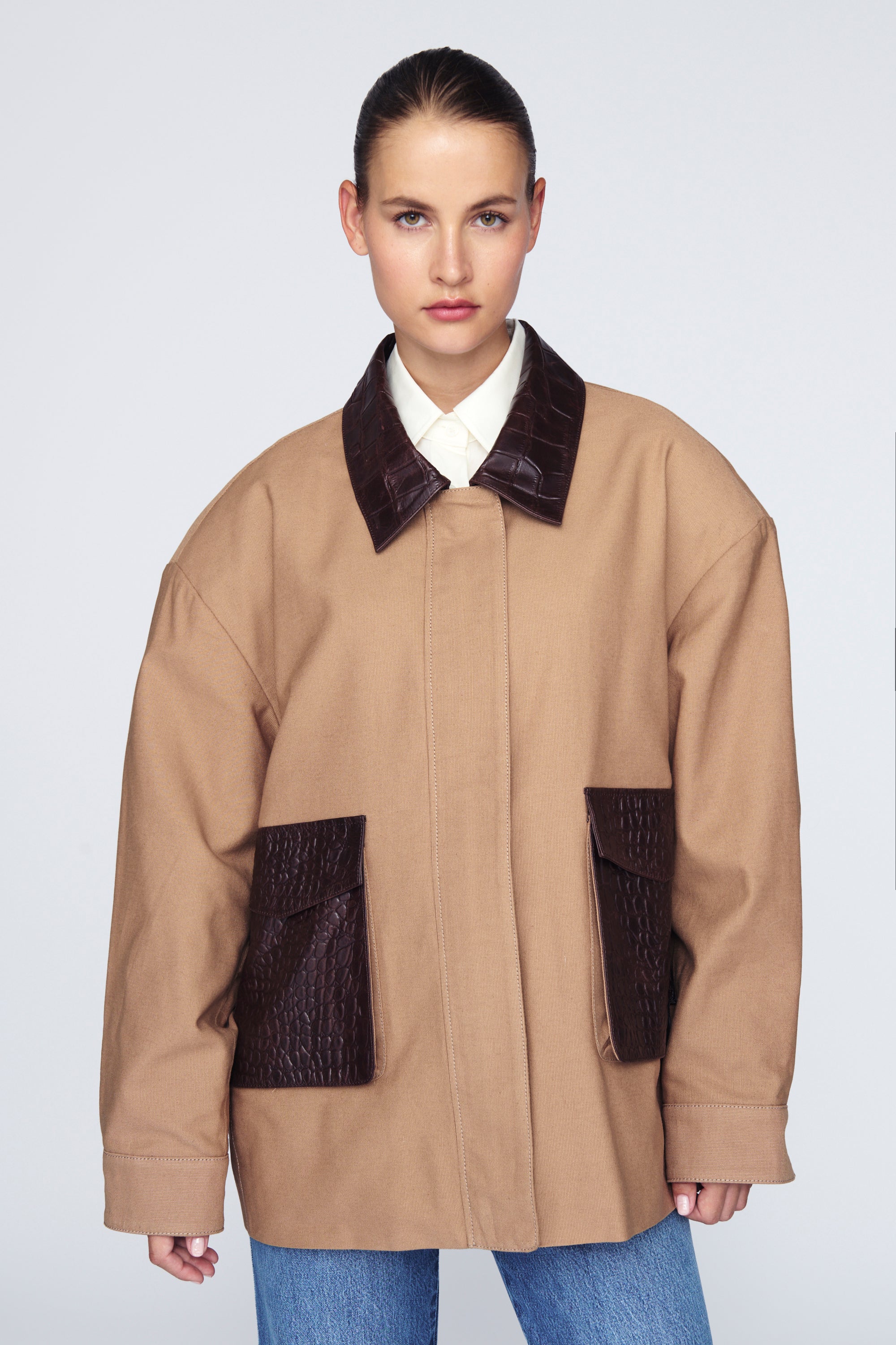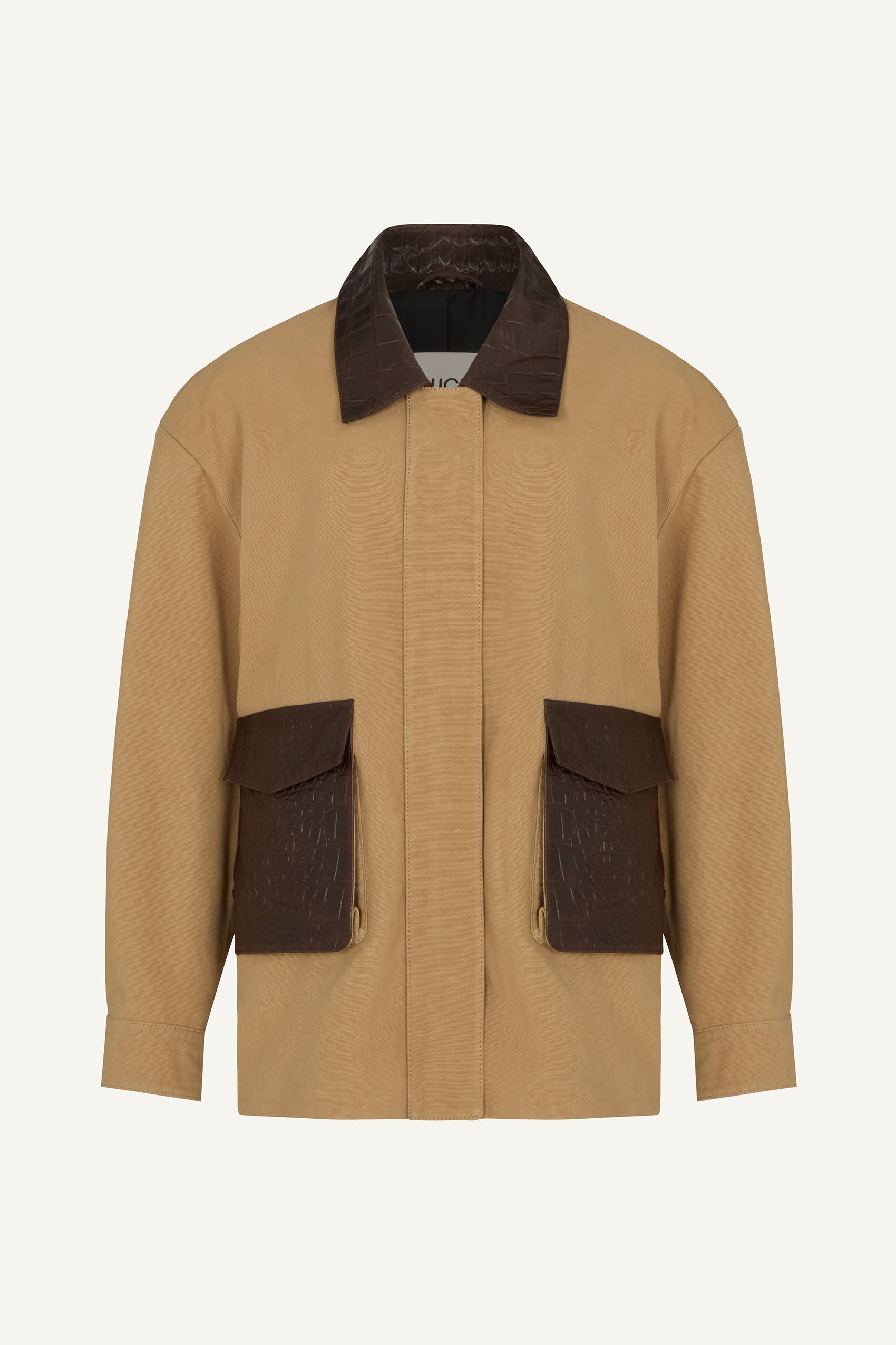 A beautiful heritage-style canvas jacket that will give any outfit a pared-back, smart-casual feel. The embossed mock croc leather detail on the flap pockets and collar adds subtle contrast and a touch of luxury.