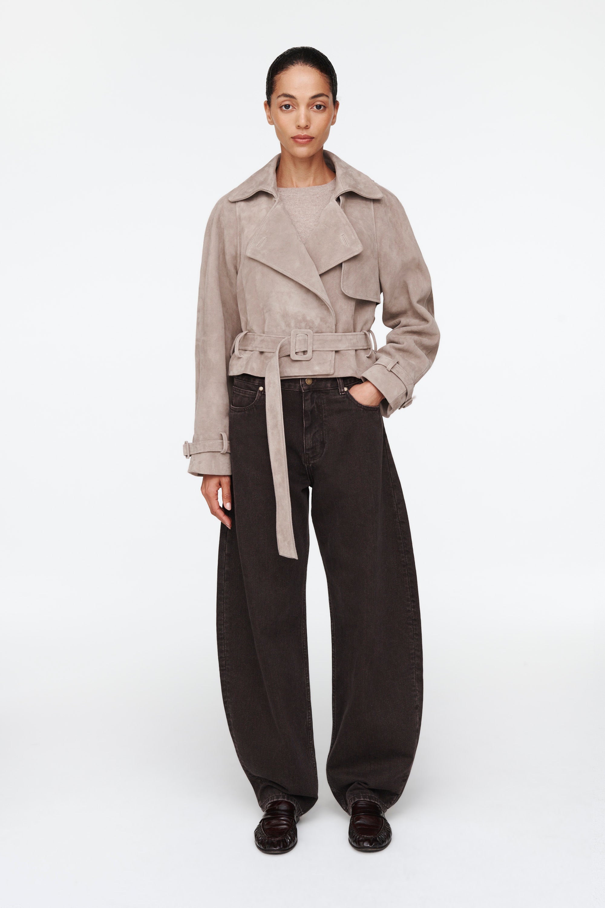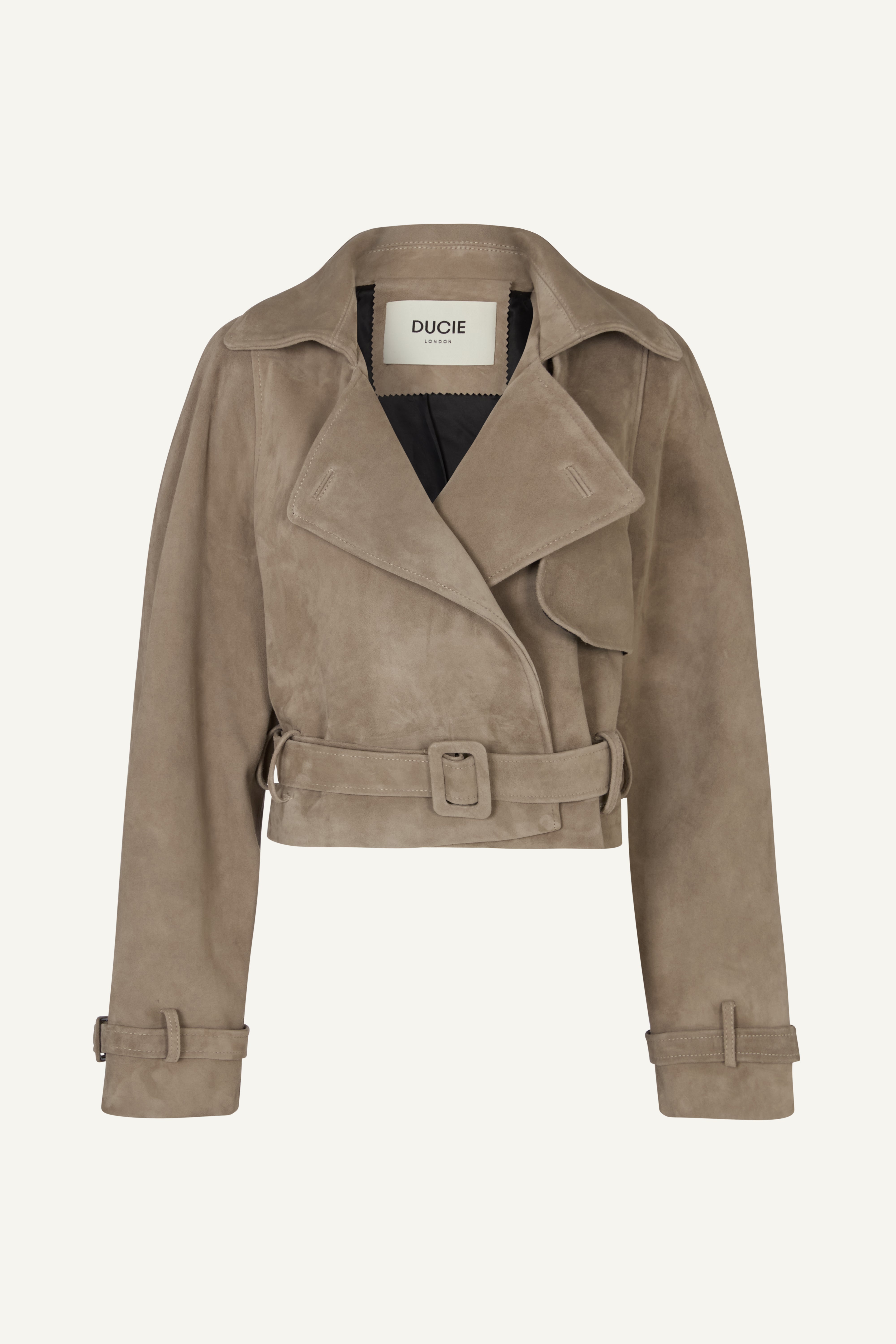 The Millie jacket is our stylish cropped take on a trench. With an oversized collar and belts at the bottom of the jacket and the sleeves, this jacket is the perfect accompaniment to spring summer outfits.