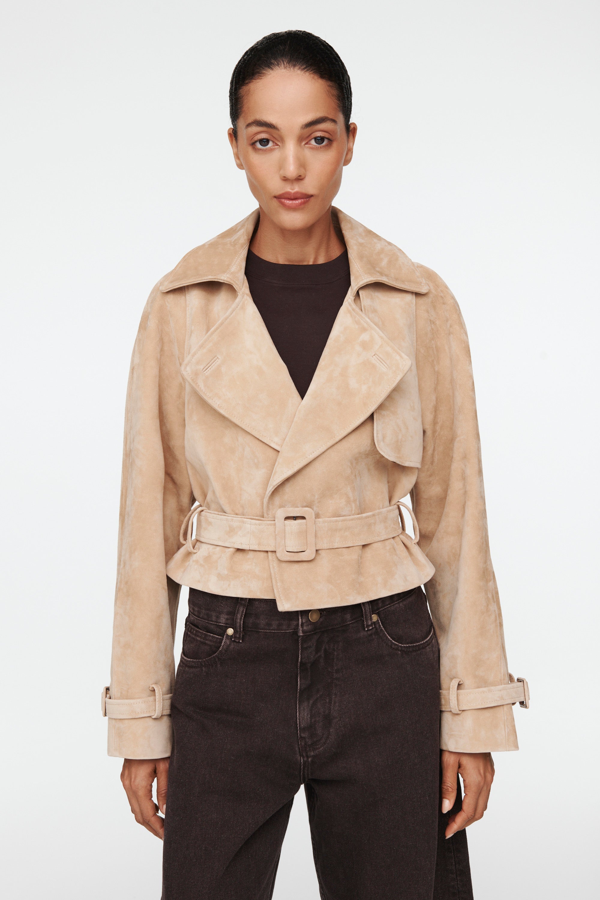 The Millie jacket is our stylish cropped take on a trench. With an oversized collar and belts at the bottom of the jacket and the sleeves, this jacket is the perfect accompaniment to spring summer outfits.