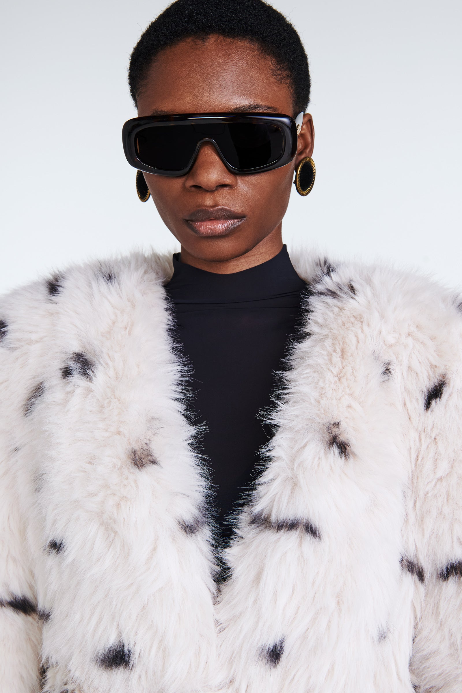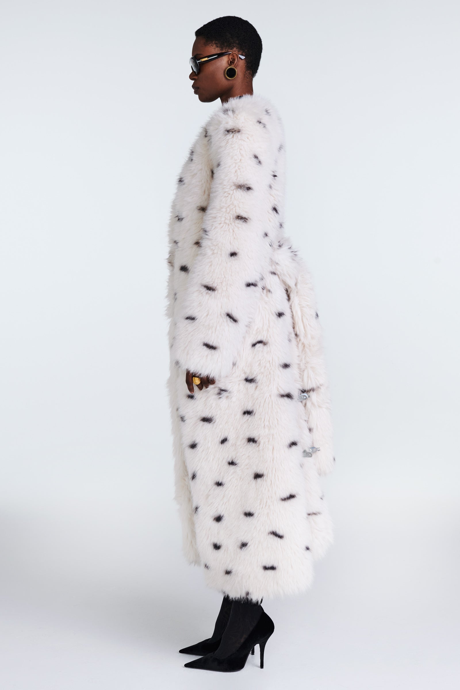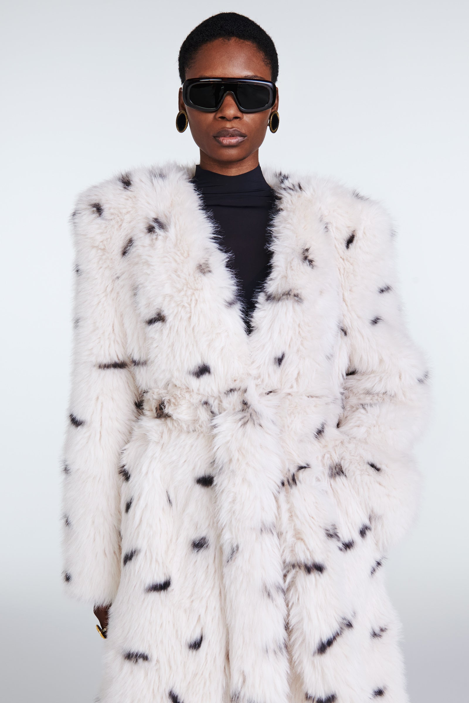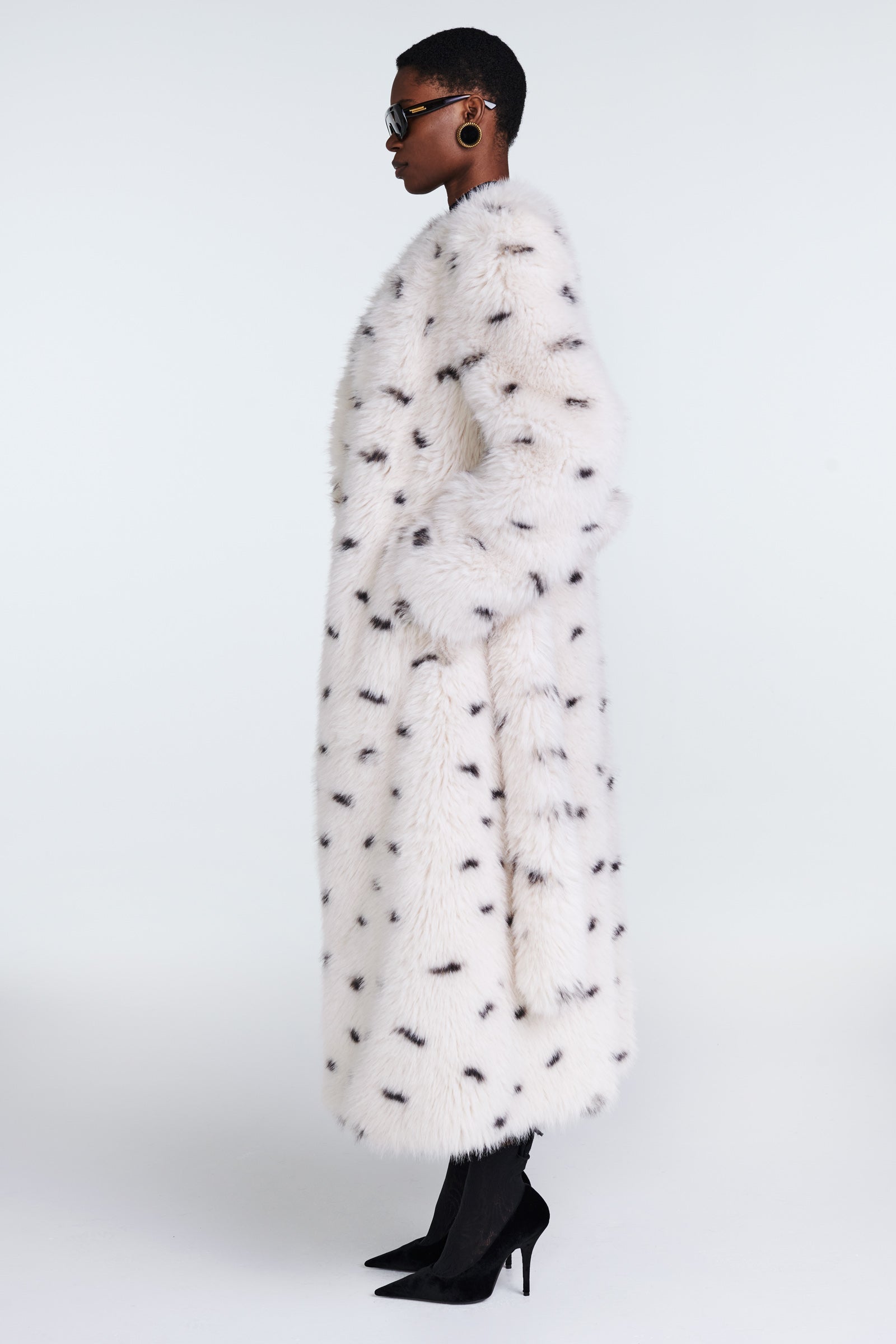 Meet Olivia, a star style of the collection. Elegant minimal design makes this long line faux fur coat an ultimate wardrobe piece for winter season. Collarless silhouette is a classic chic look for every occasion.