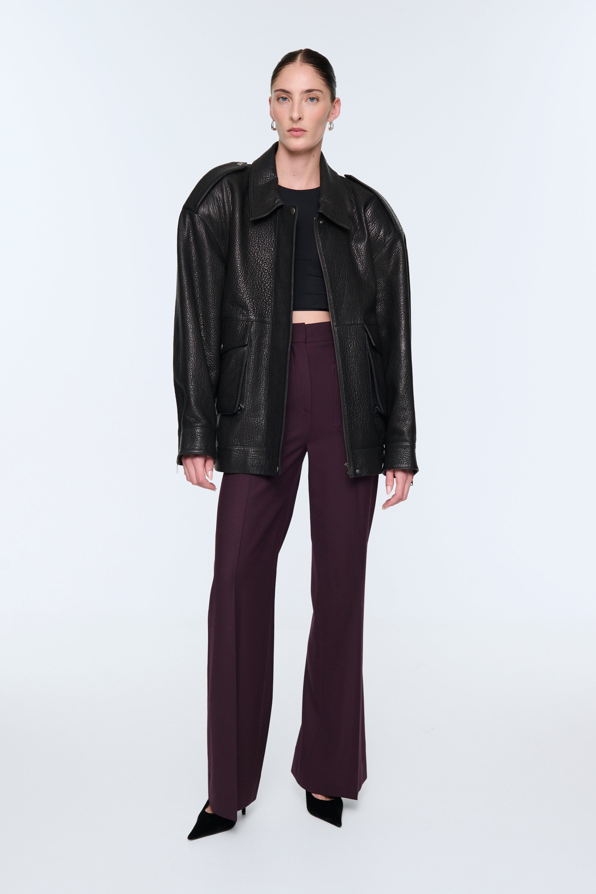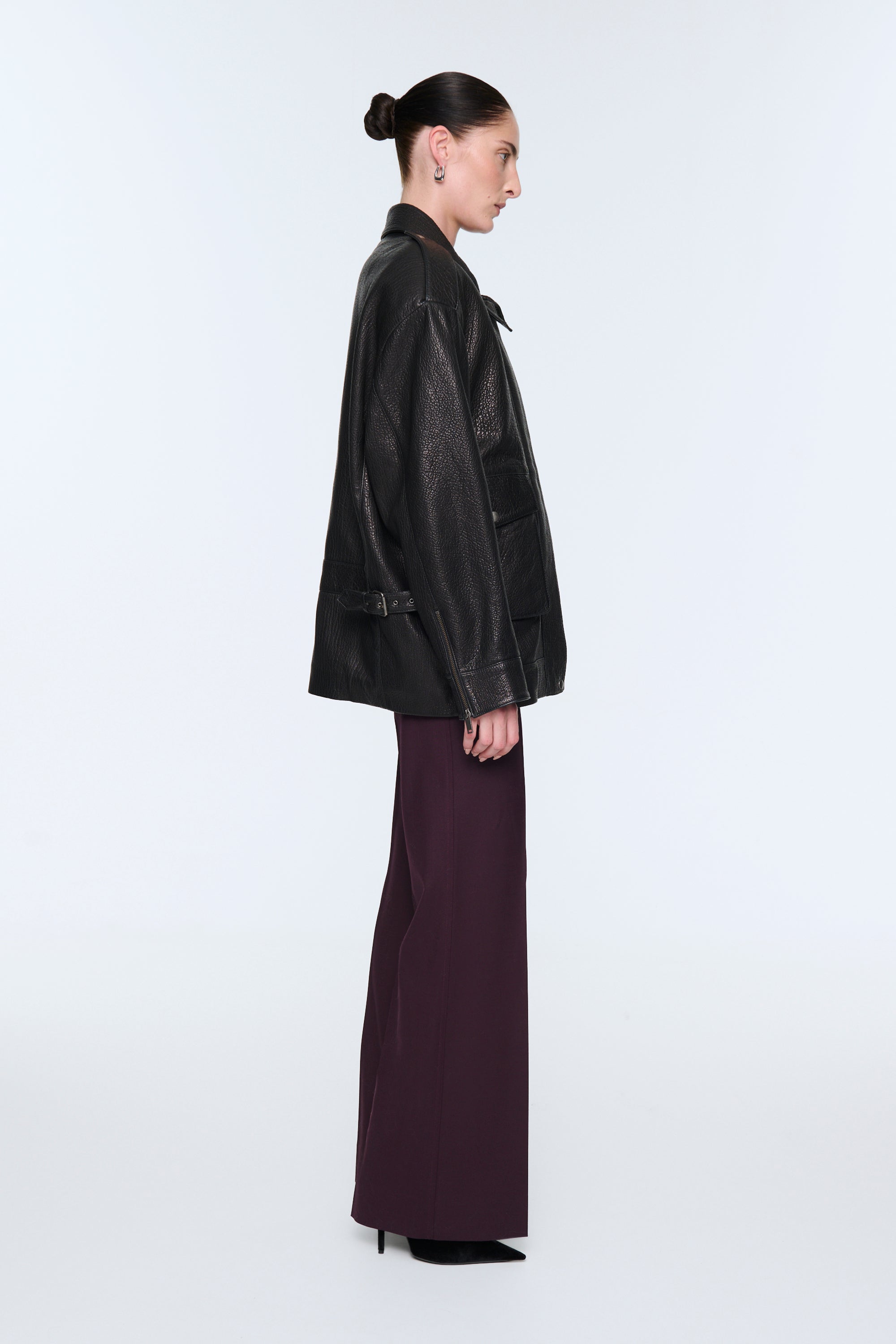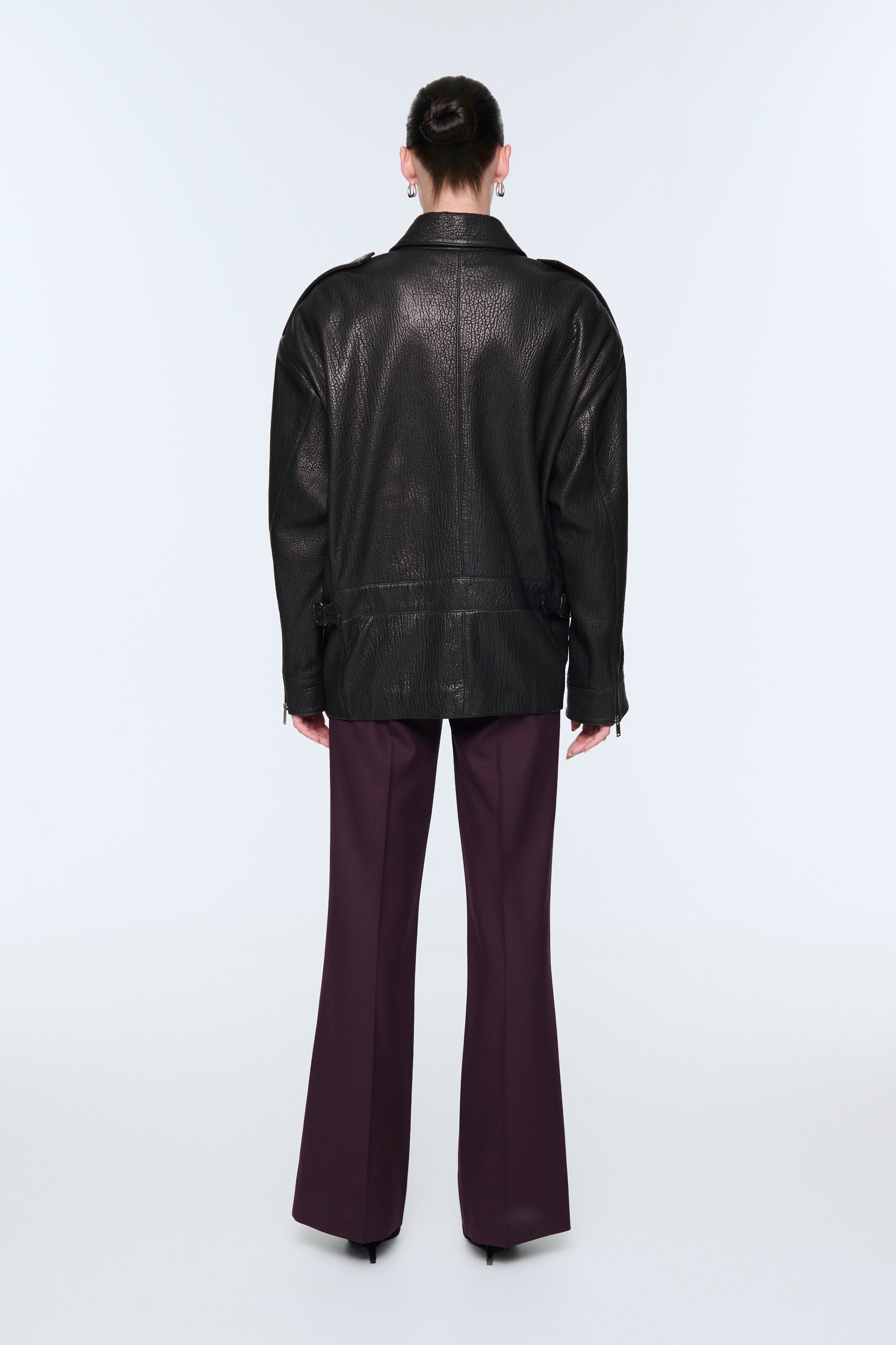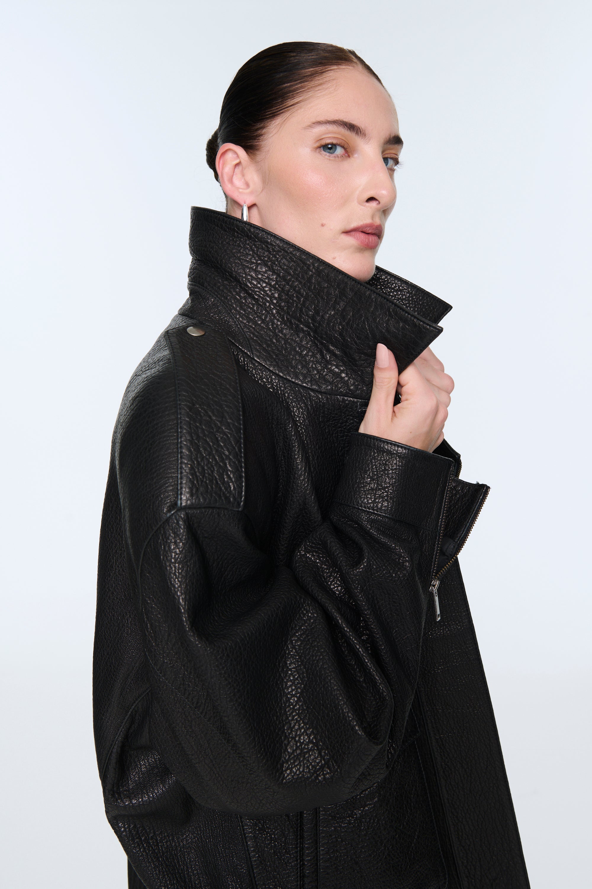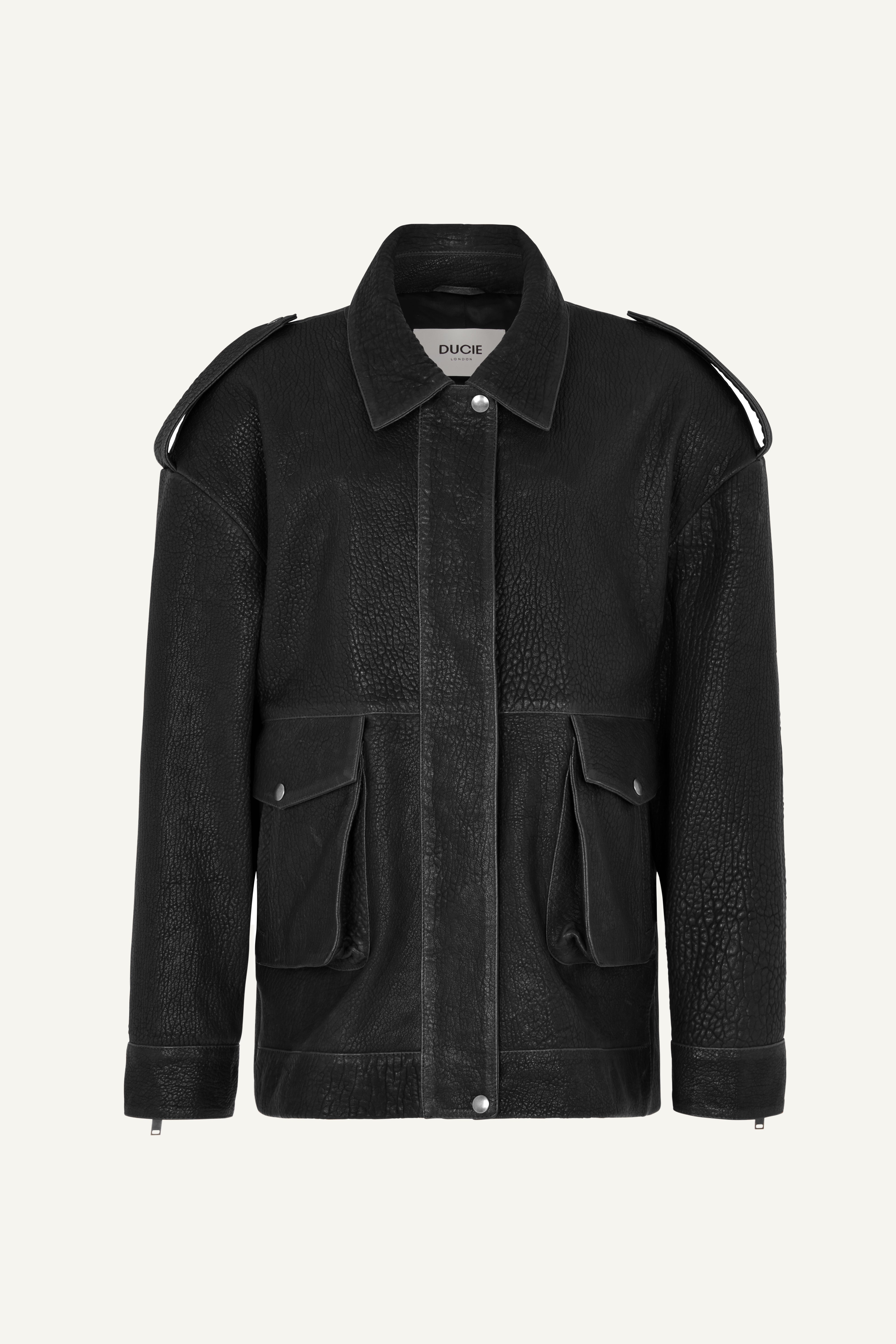 This incredibly rich dark chocolate leather jacket is a stunning interpretation of the perennially stylish biker jacket. The oversized boxy shape, finished with classic detailing including epaulettes and deep pockets make this jacket the epitome of laid-back luxury. We love the grained leather texture and the mega padded shoulders, which give this jacket a fresh and contemporary feel.