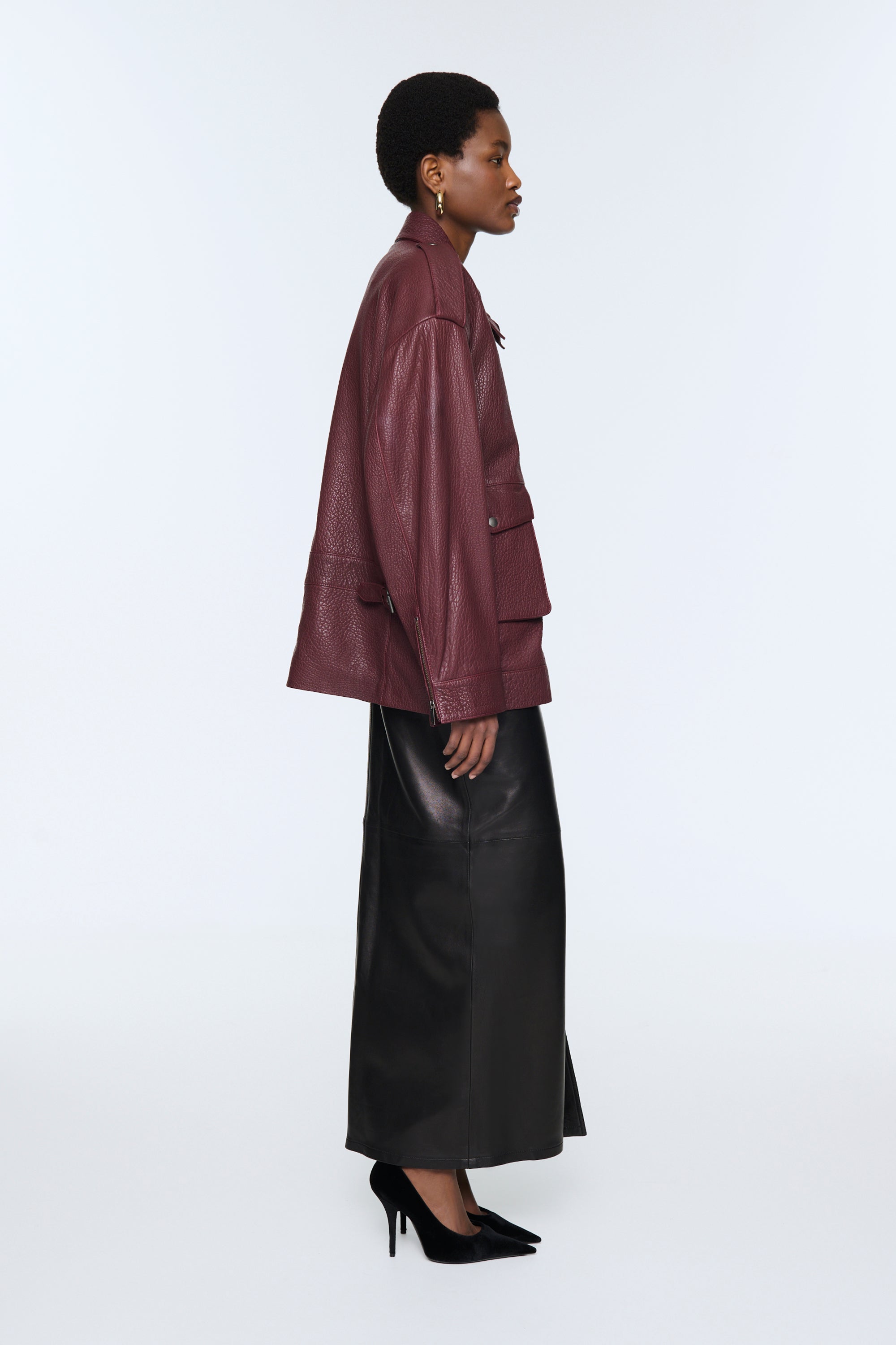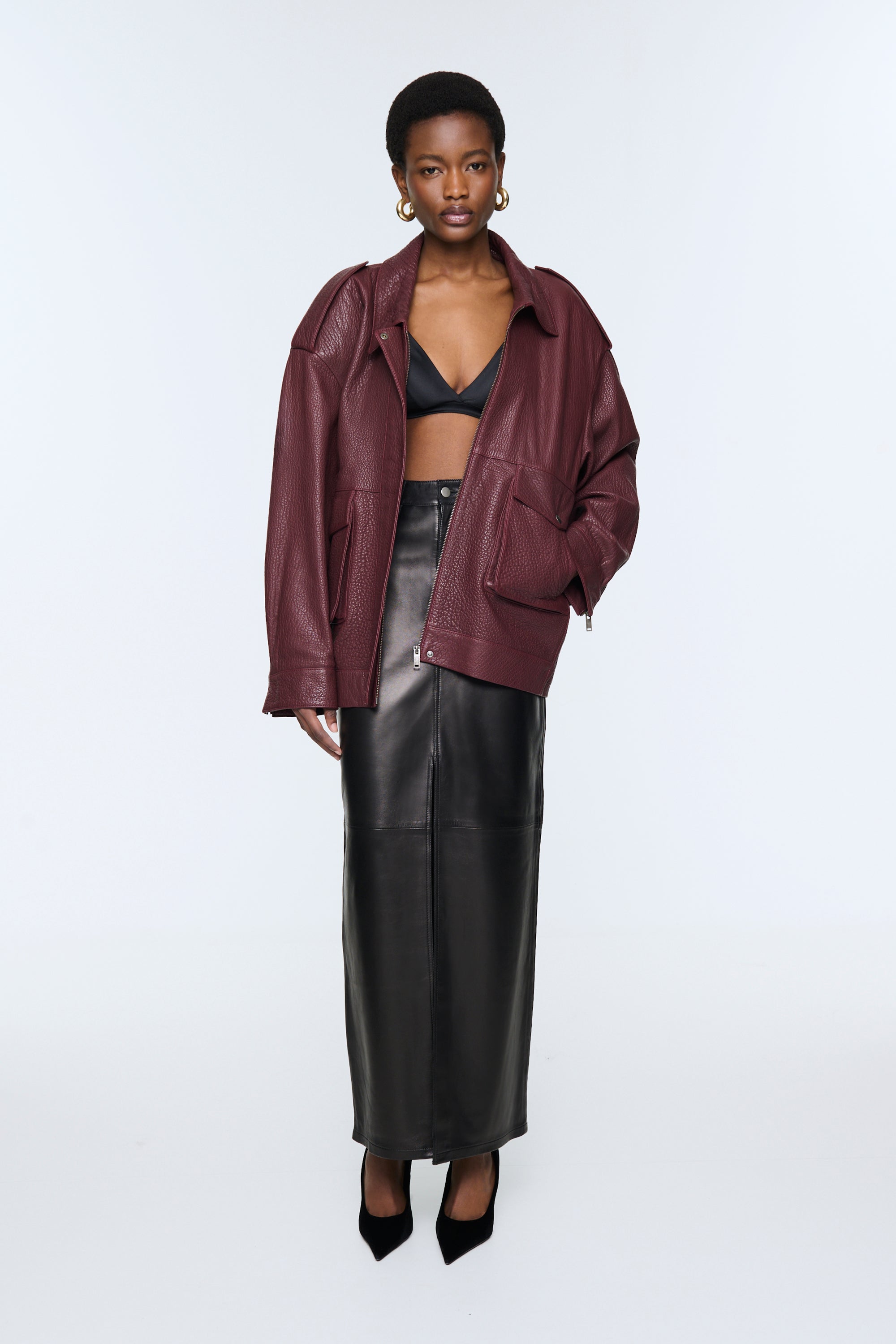 • Styled with Chicago Leather Maxi Skirt.