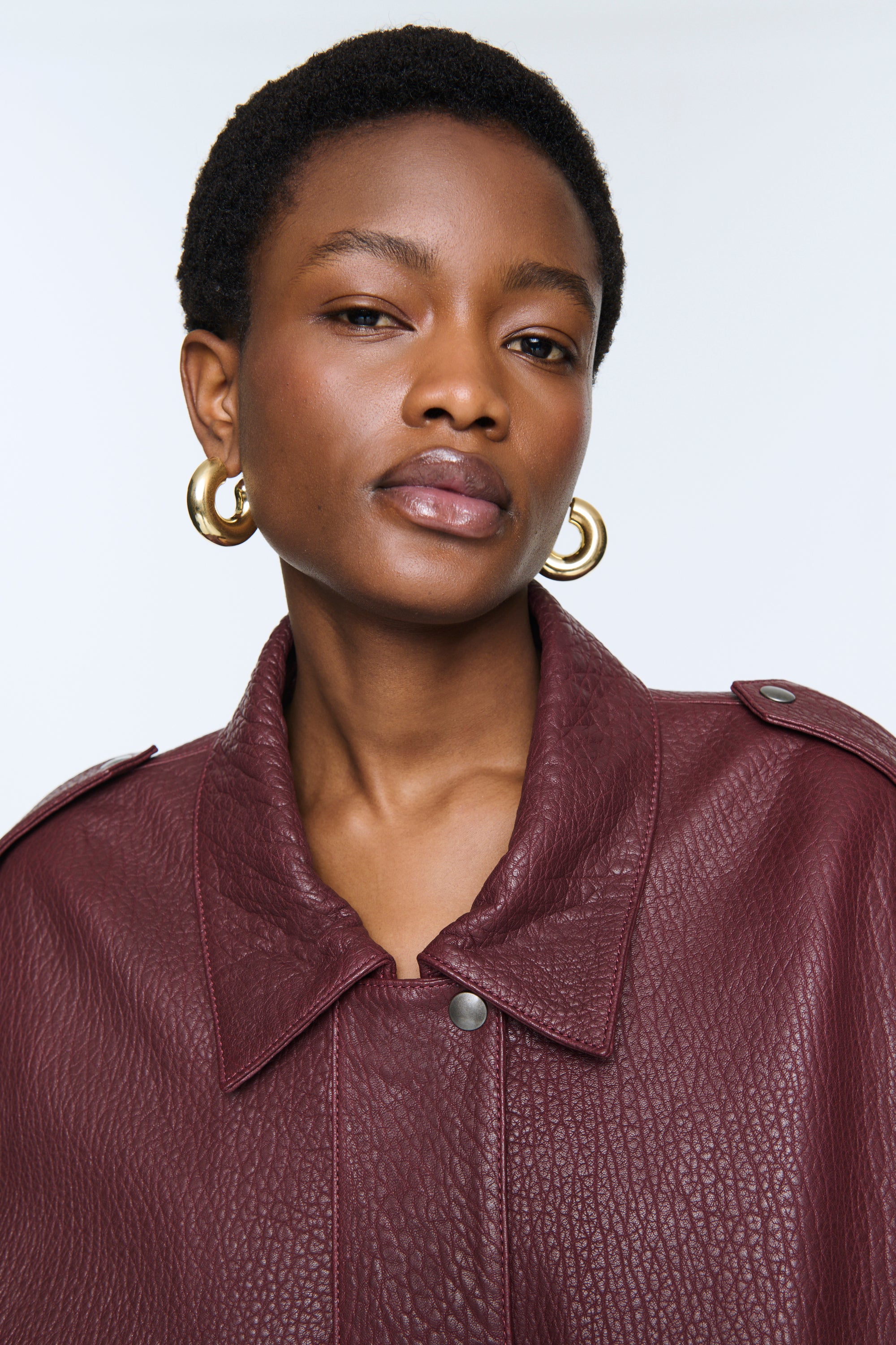 This leather jacket is a stunning interpretation of the perennially stylish biker jacket. The oversized boxy shape, finished with classic detailing including epaulettes and deep pockets make this jacket the epitome of laid-back luxury. We love the grained leather texture and the mega padded shoulders, which give this jacket a fresh and contemporary feel.