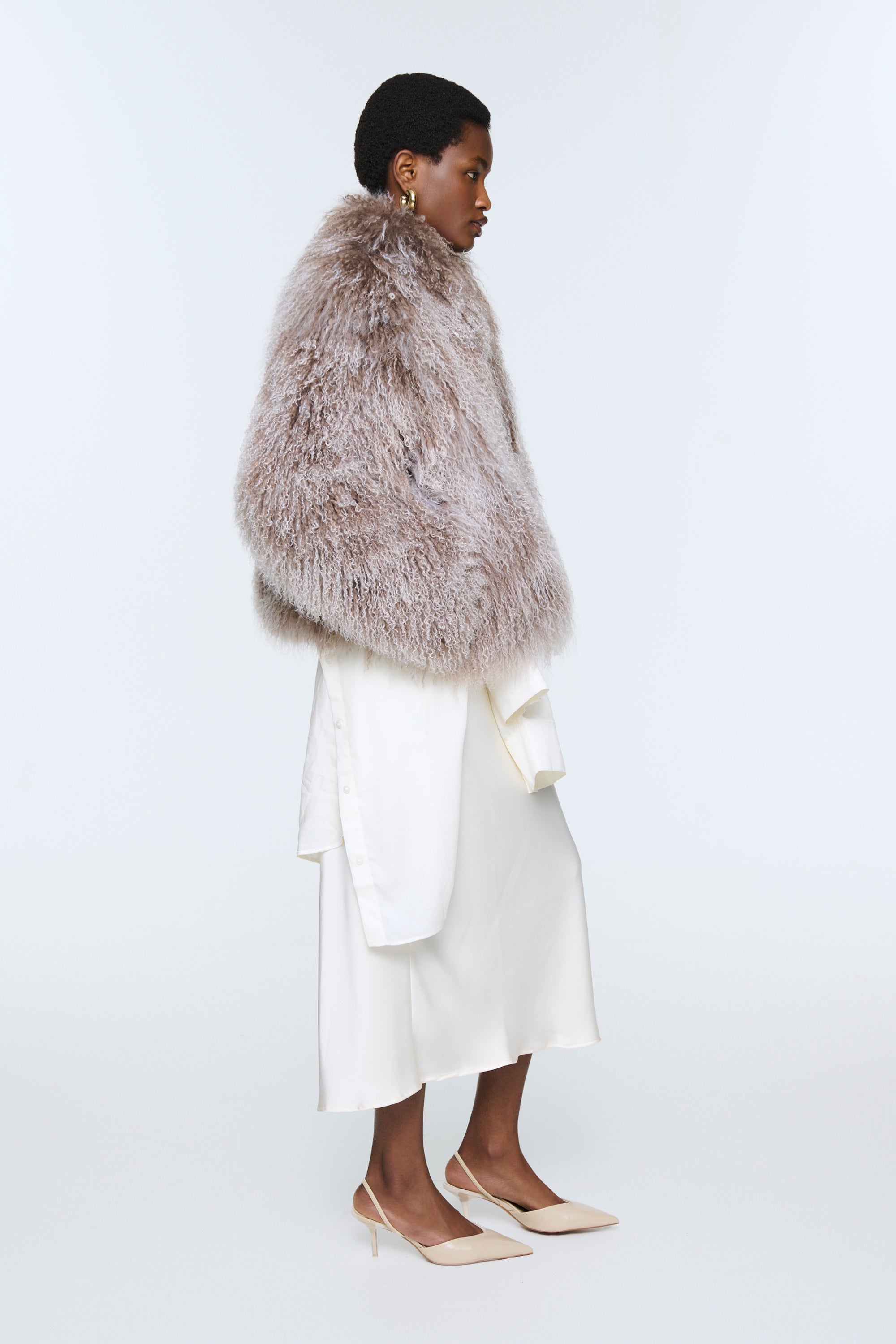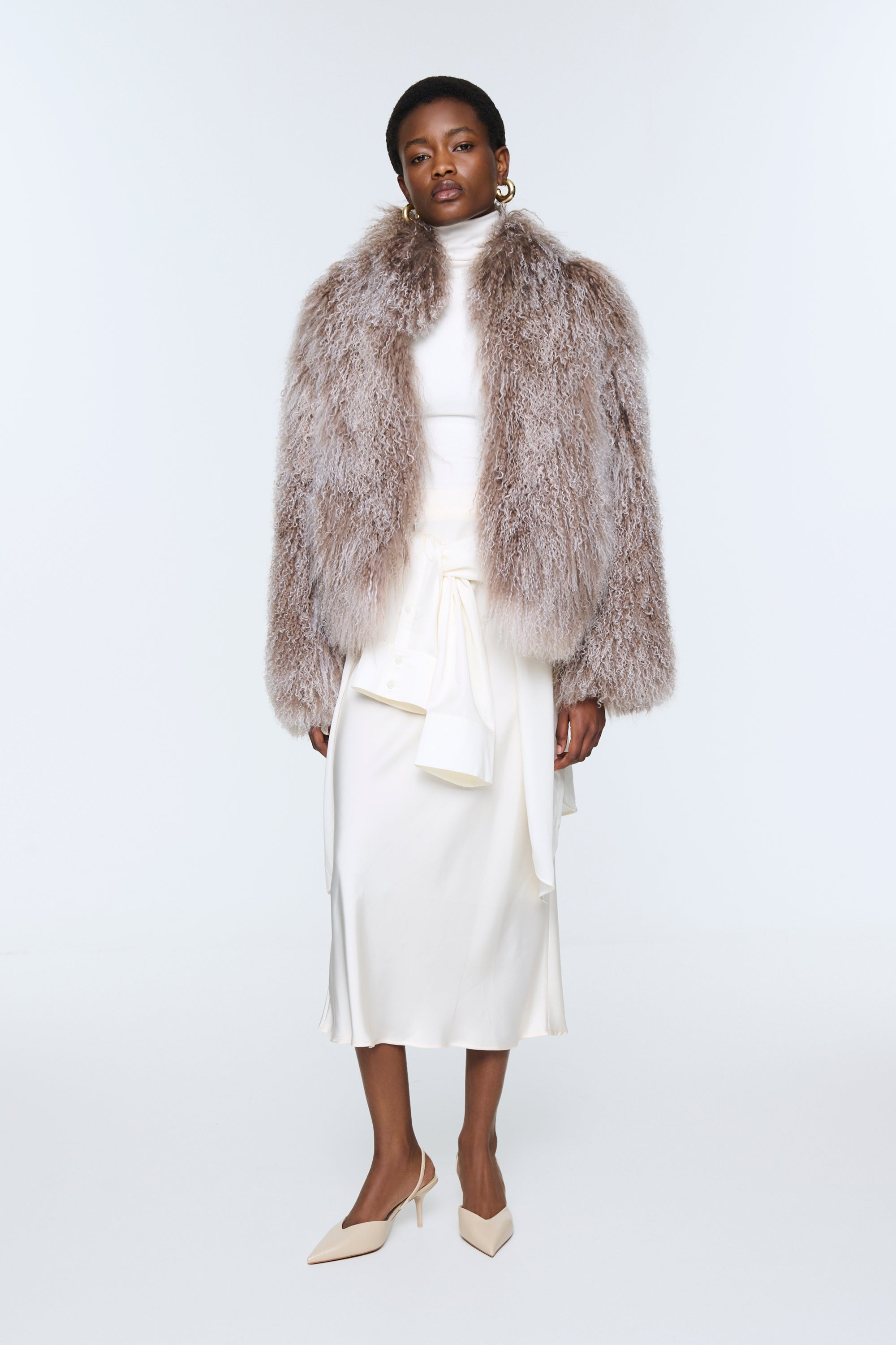 Cut from the most sumptuous, Mongolian sheepskin, this coat makes a statement wherever it goes. The natural curly finish and the discreetly concealed fastenings make this piece feel as chic as it is cosy.