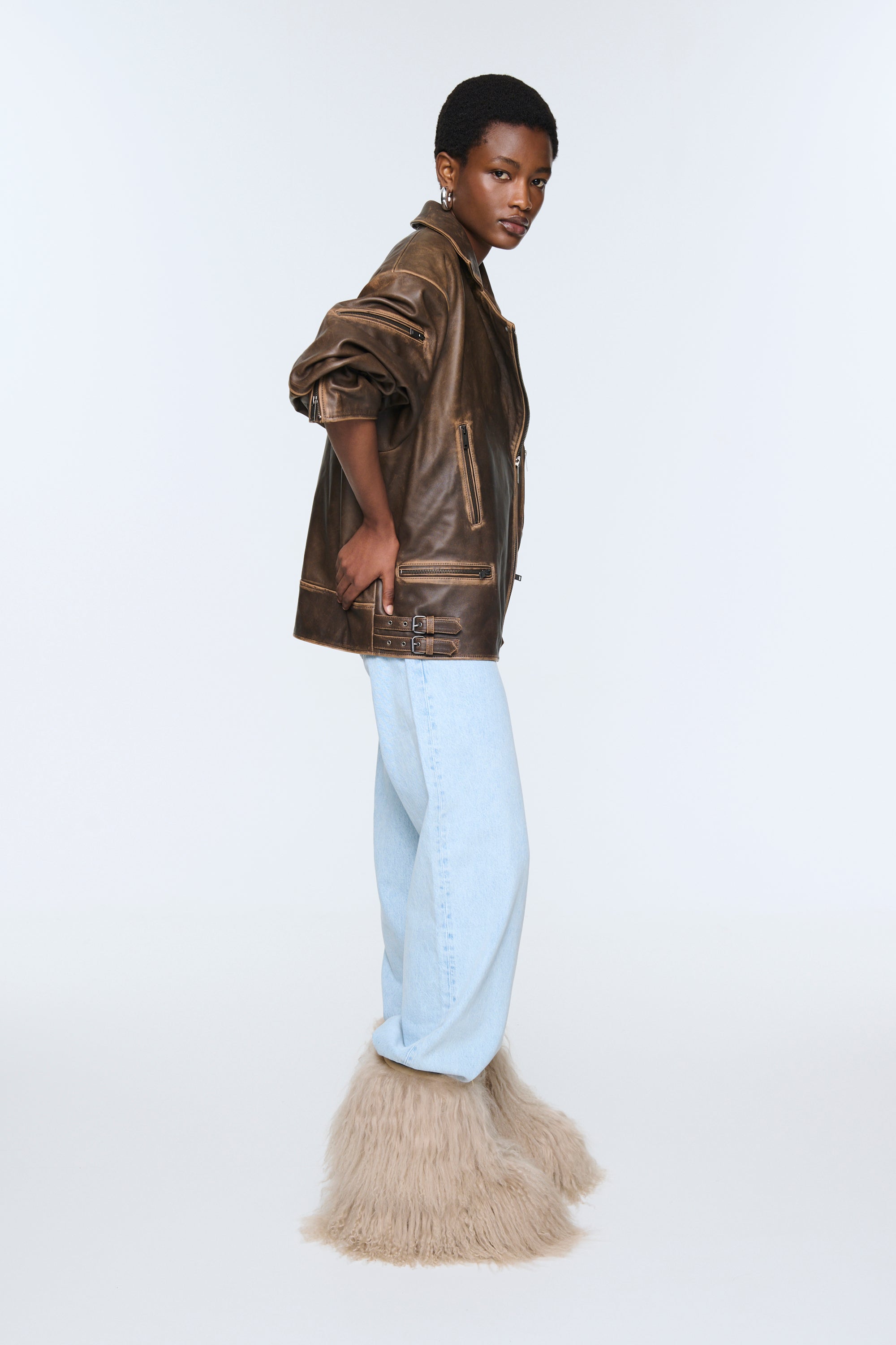 This generously cut jacket with drop shoulders and classic biker styling falls at a flattering length on the lower hip. As stylish as it is practical this is the jacket that will keep you warm in the winter and the chill off on those surprisingly cold summer nights. Featuring fabulous details, including a double buckle cinch belt and generous collar, this coat looks great worn zipped up or loose and casual.