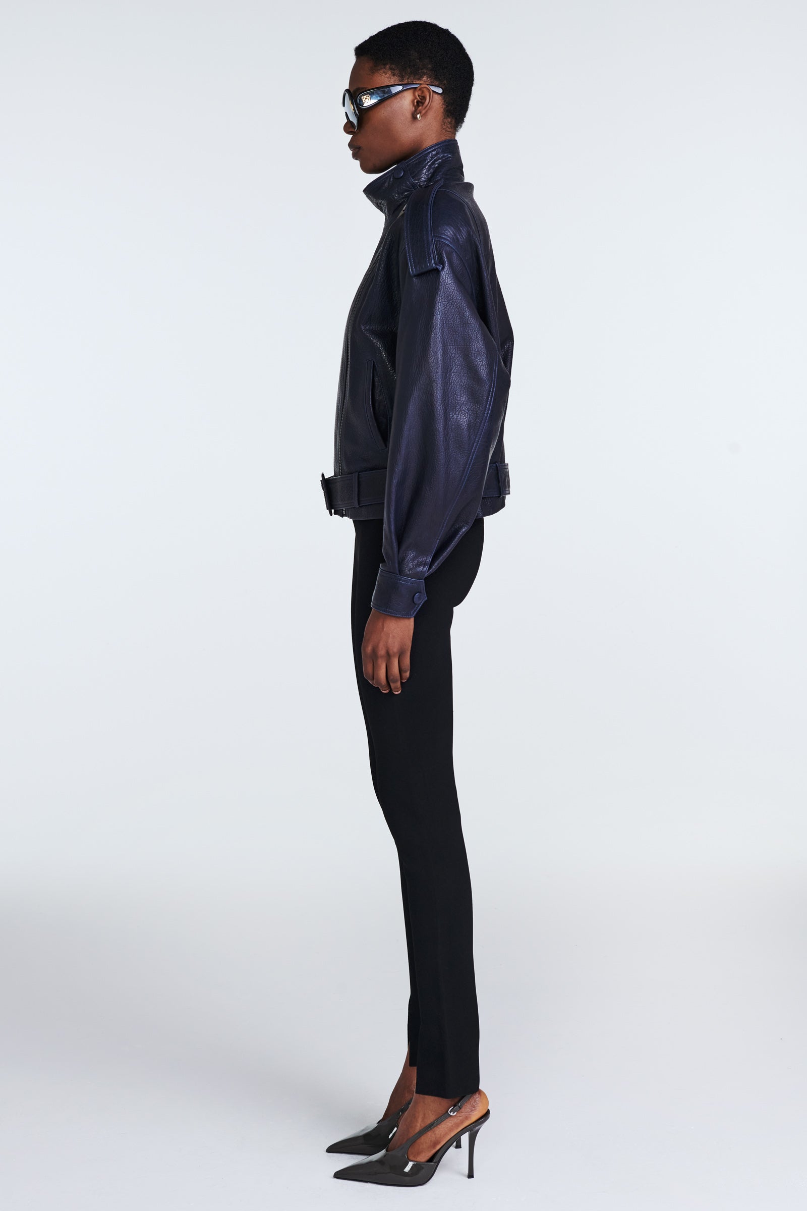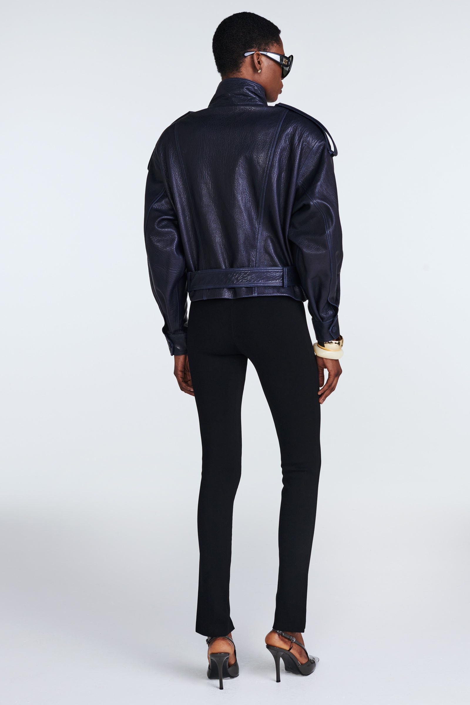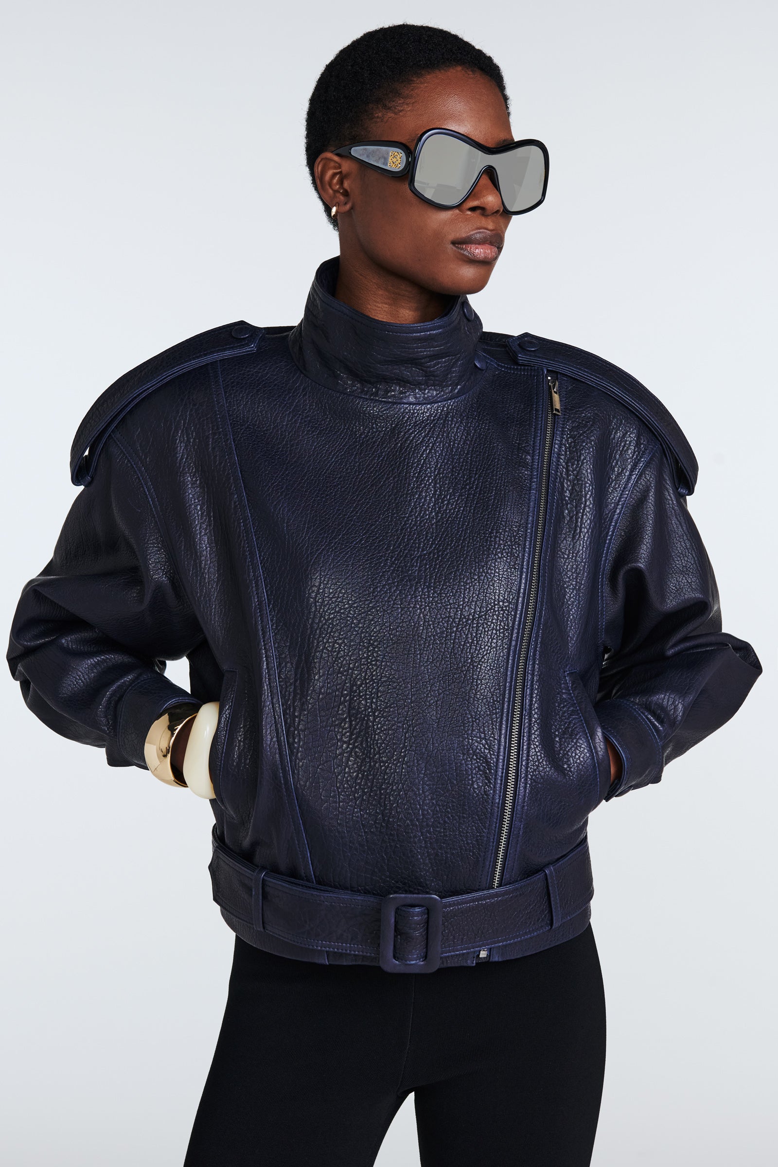 We especially love the high neck of this jacket, which is bound to capture attention. Crafted from exceptionally soft, high-quality grained leather, it boasts exquisite tailoring. Moreover, the numerous details in its design elevate it to a new standard of luxury.