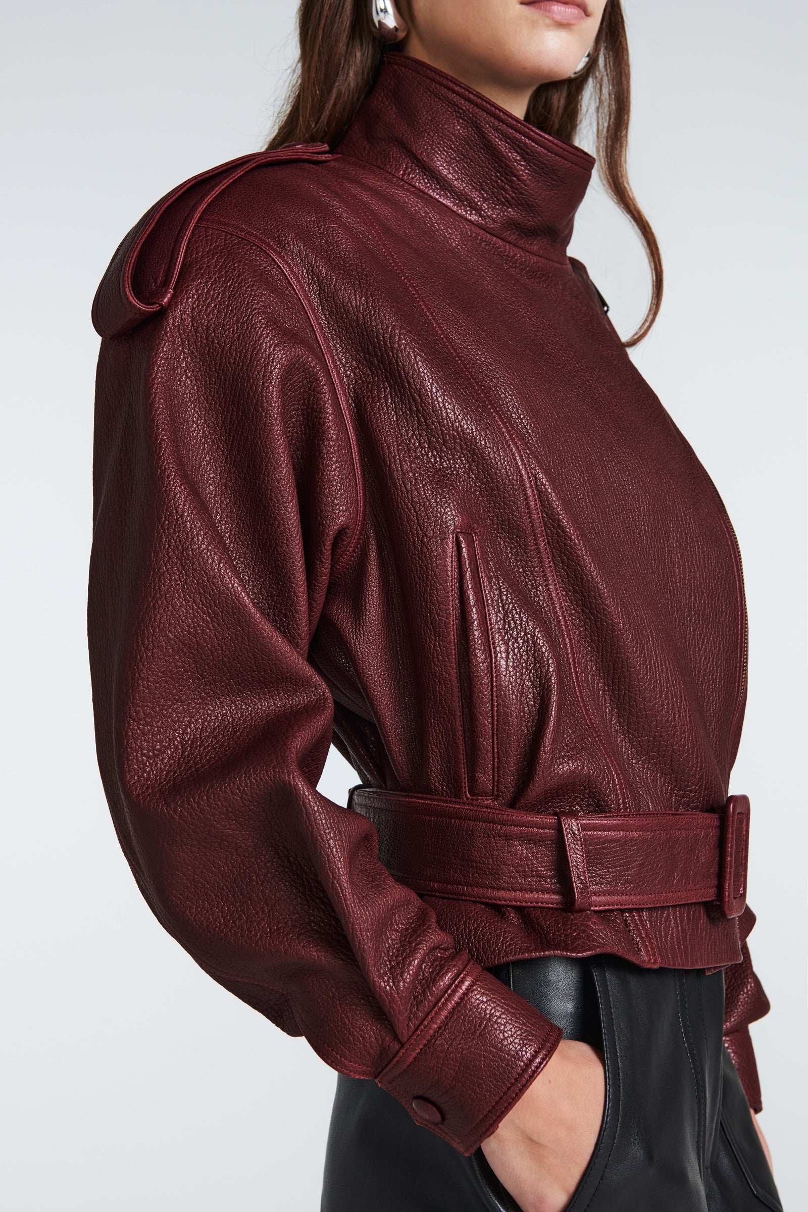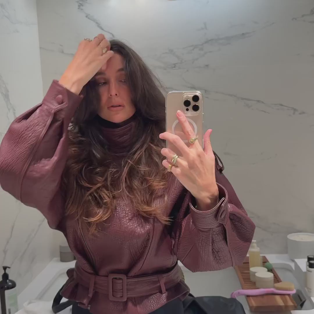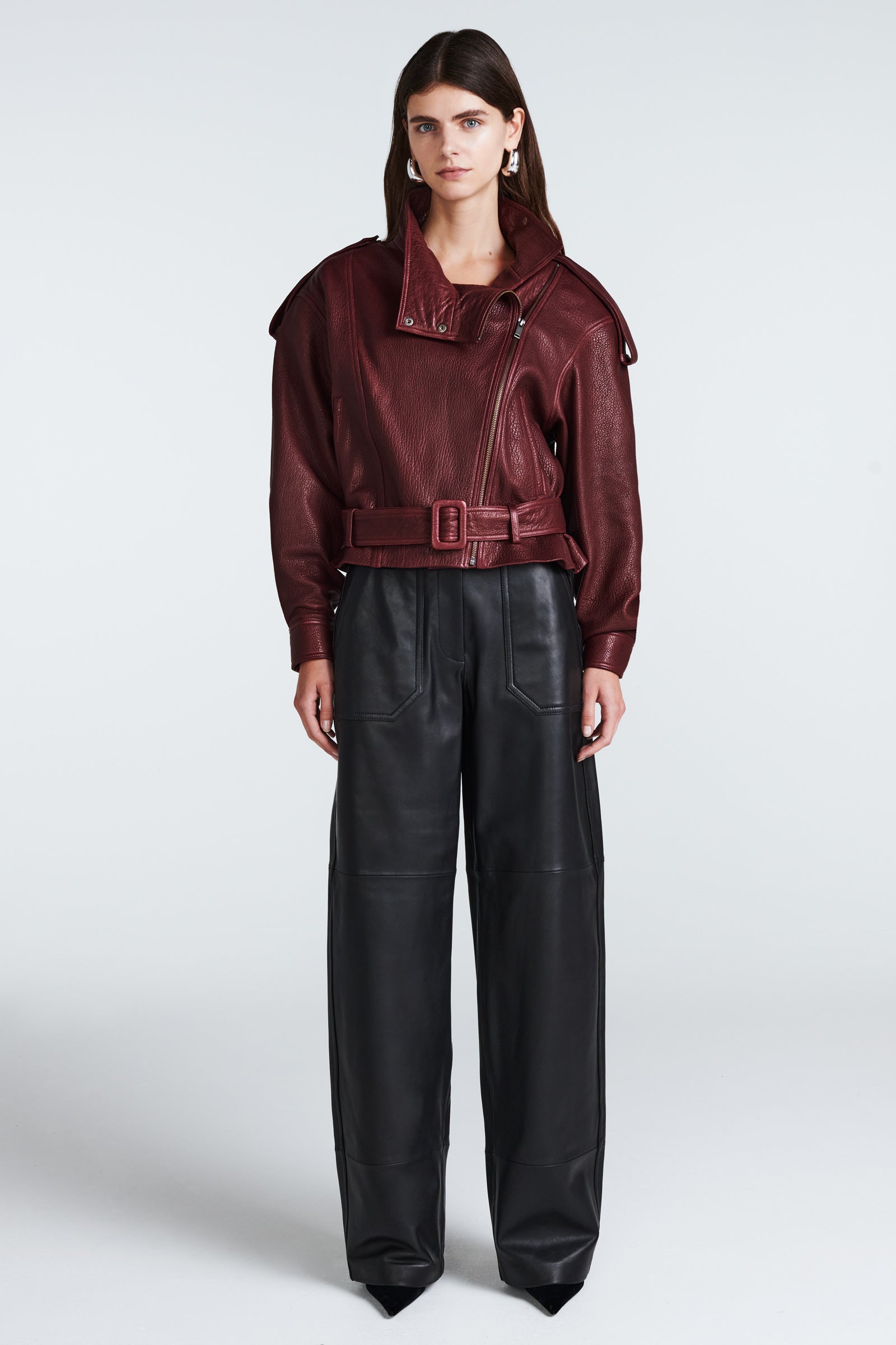 We especially love the high neck of this jacket, which is bound to capture attention. Crafted from exceptionally soft, high-quality grained leather, it boasts exquisite tailoring. Moreover, the numerous details in its design elevate it to a new standard of luxury.