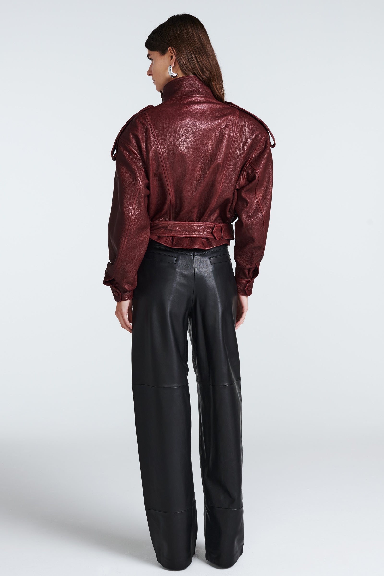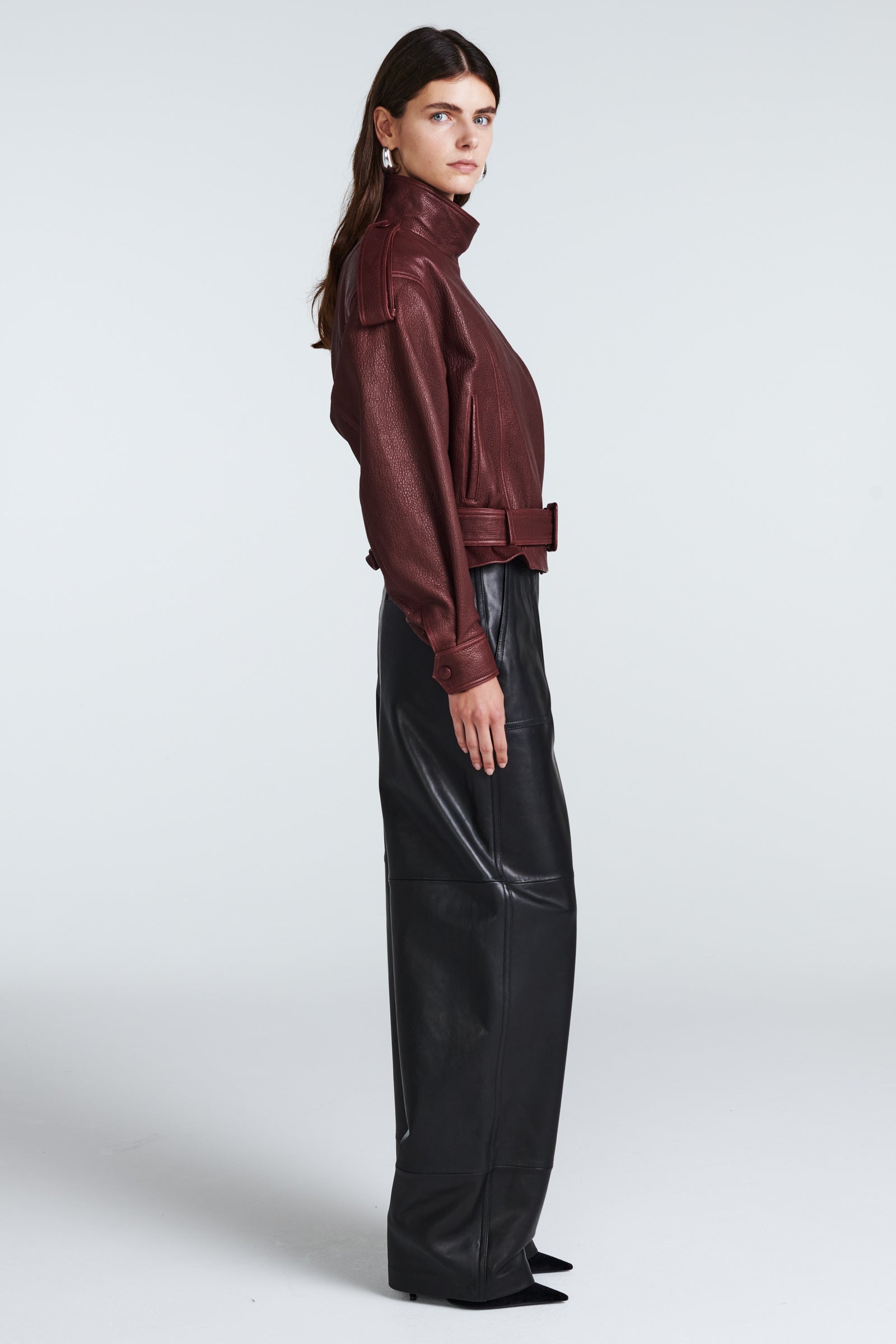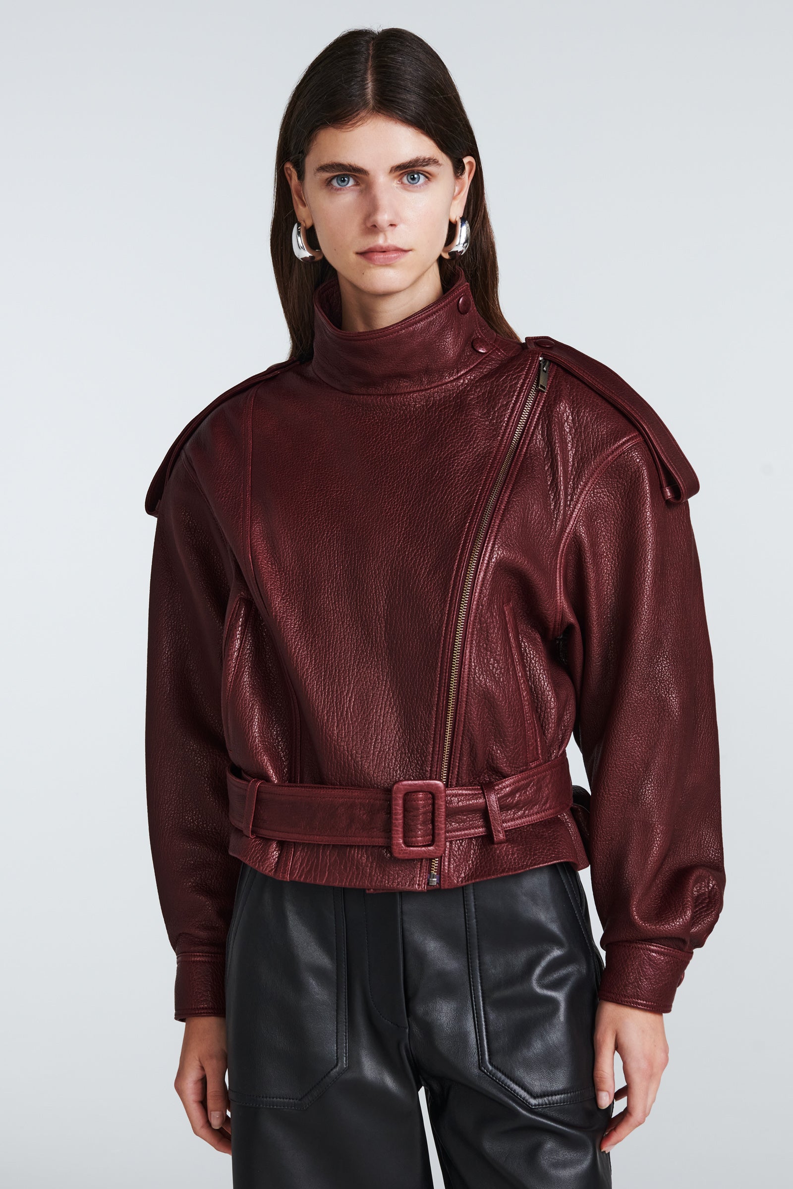 We especially love the high neck of this jacket, which is bound to capture attention. Crafted from exceptionally soft, high-quality grained leather, it boasts exquisite tailoring. Moreover, the numerous details in its design elevate it to a new standard of luxury.