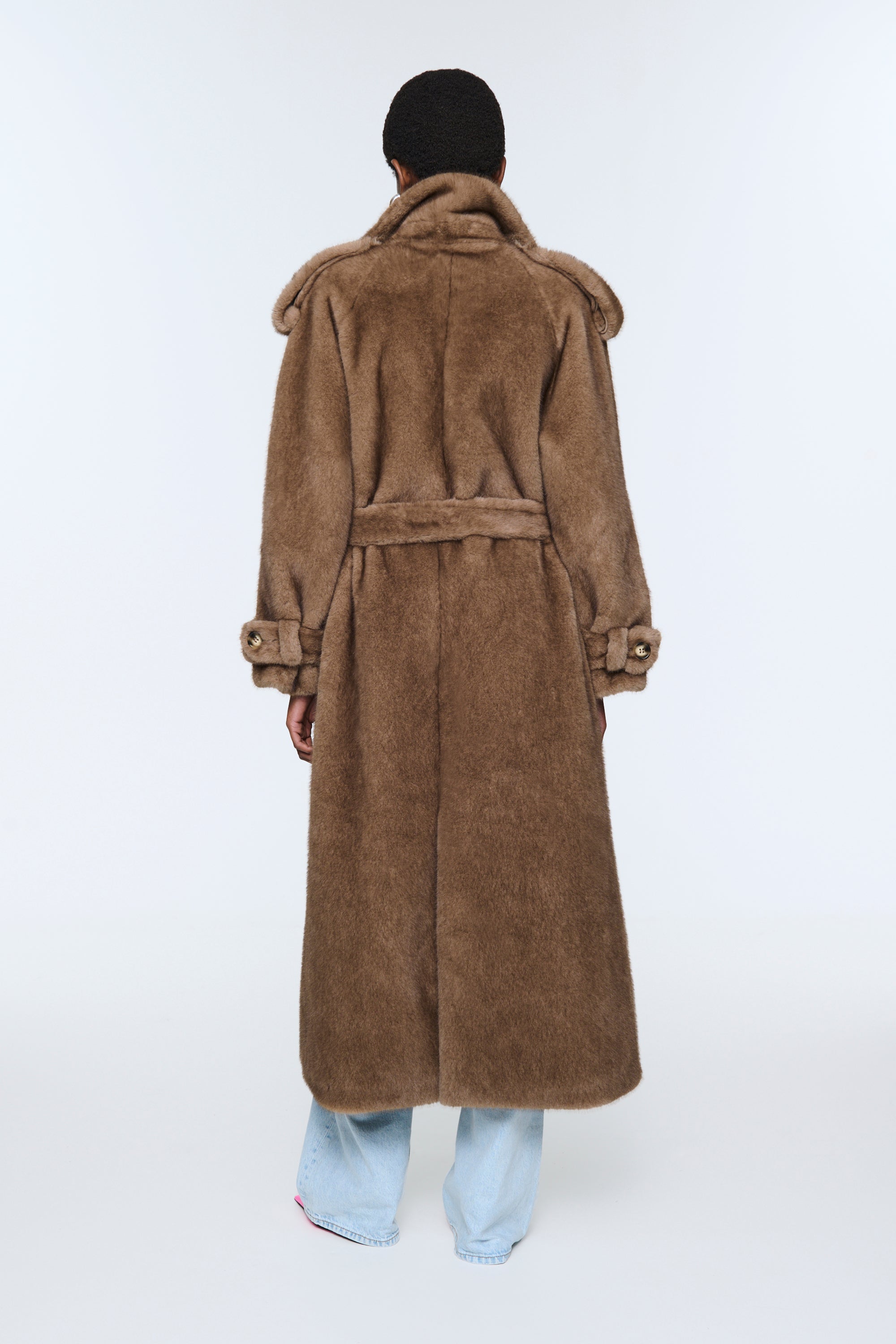 The Thalia Coat is a statement piece crafted from ultra-soft luxury faux fur, offering warmth and elegance in equal measure. Its timeless silhouette and plush texture make it the perfect finishing touch for any sophisticated winter ensemble.