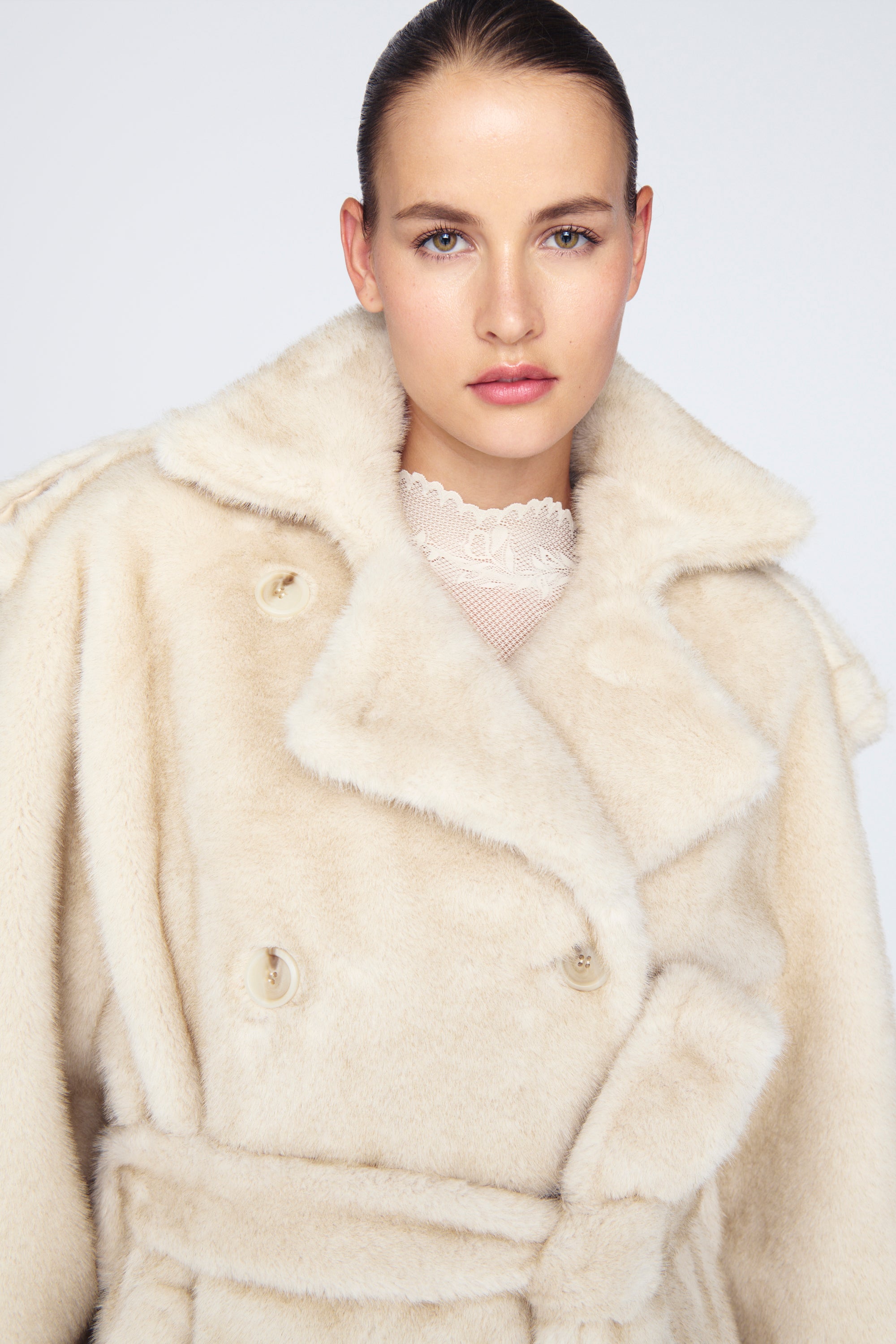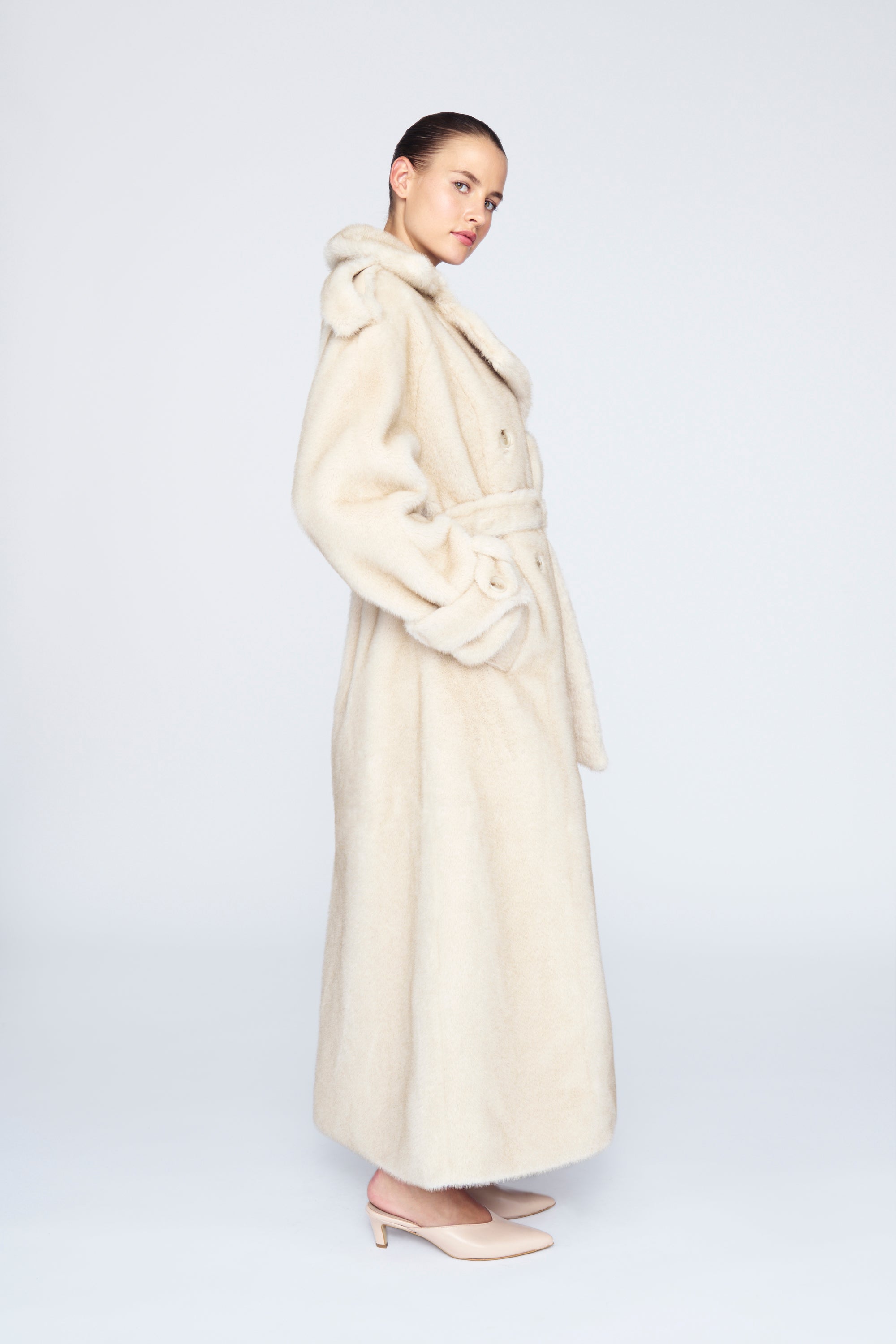 The Thalia Coat is a statement piece crafted from ultra-soft luxury faux fur, offering warmth and elegance in equal measure. Its timeless silhouette and plush texture make it the perfect finishing touch for any sophisticated winter ensemble.